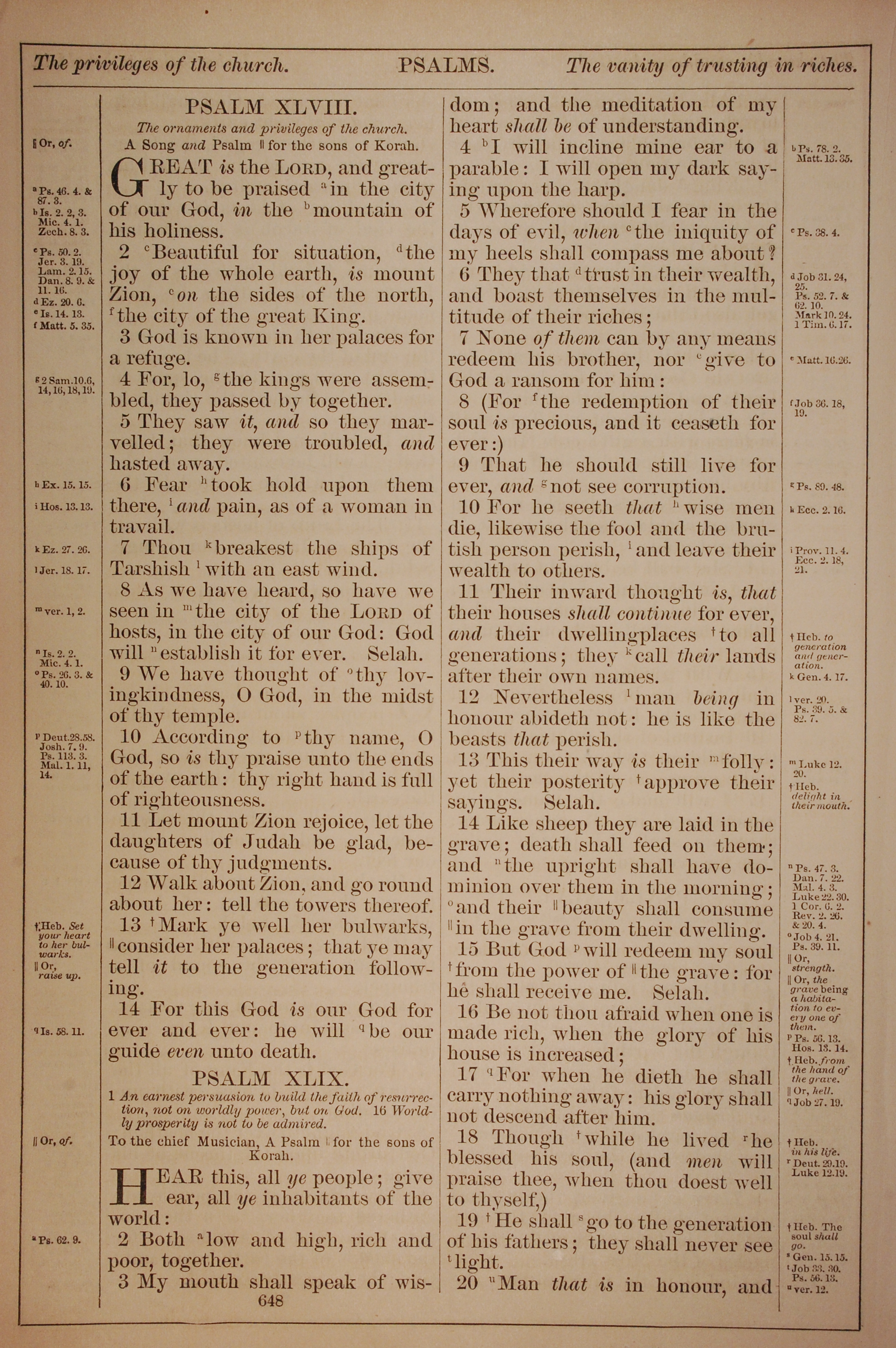 1882年Holy Bible 诗篇 48 章 1 节到 49 章 20 节