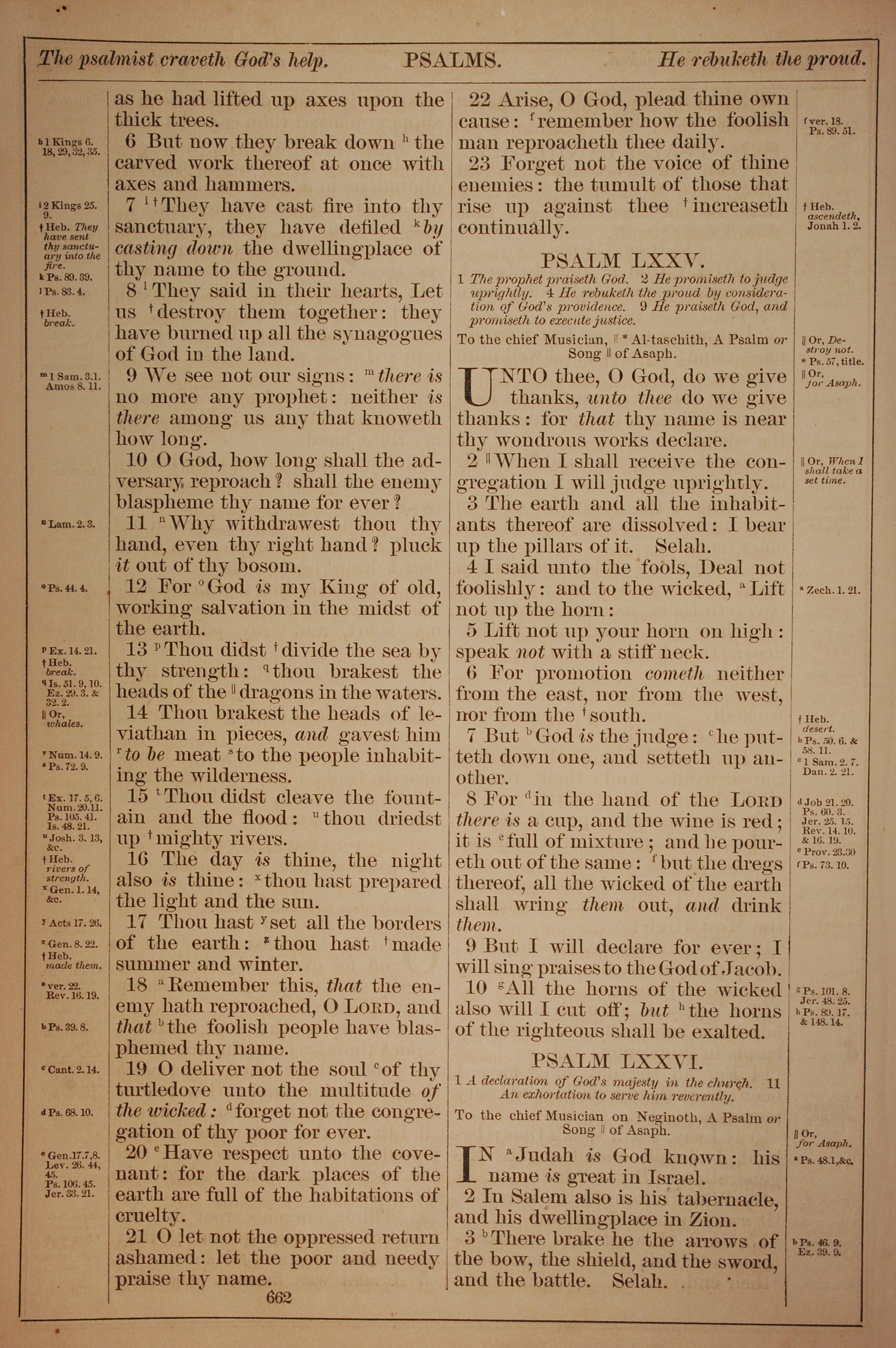 1882年Holy Bible 诗篇 74 章 6 节到 76 章 3 节