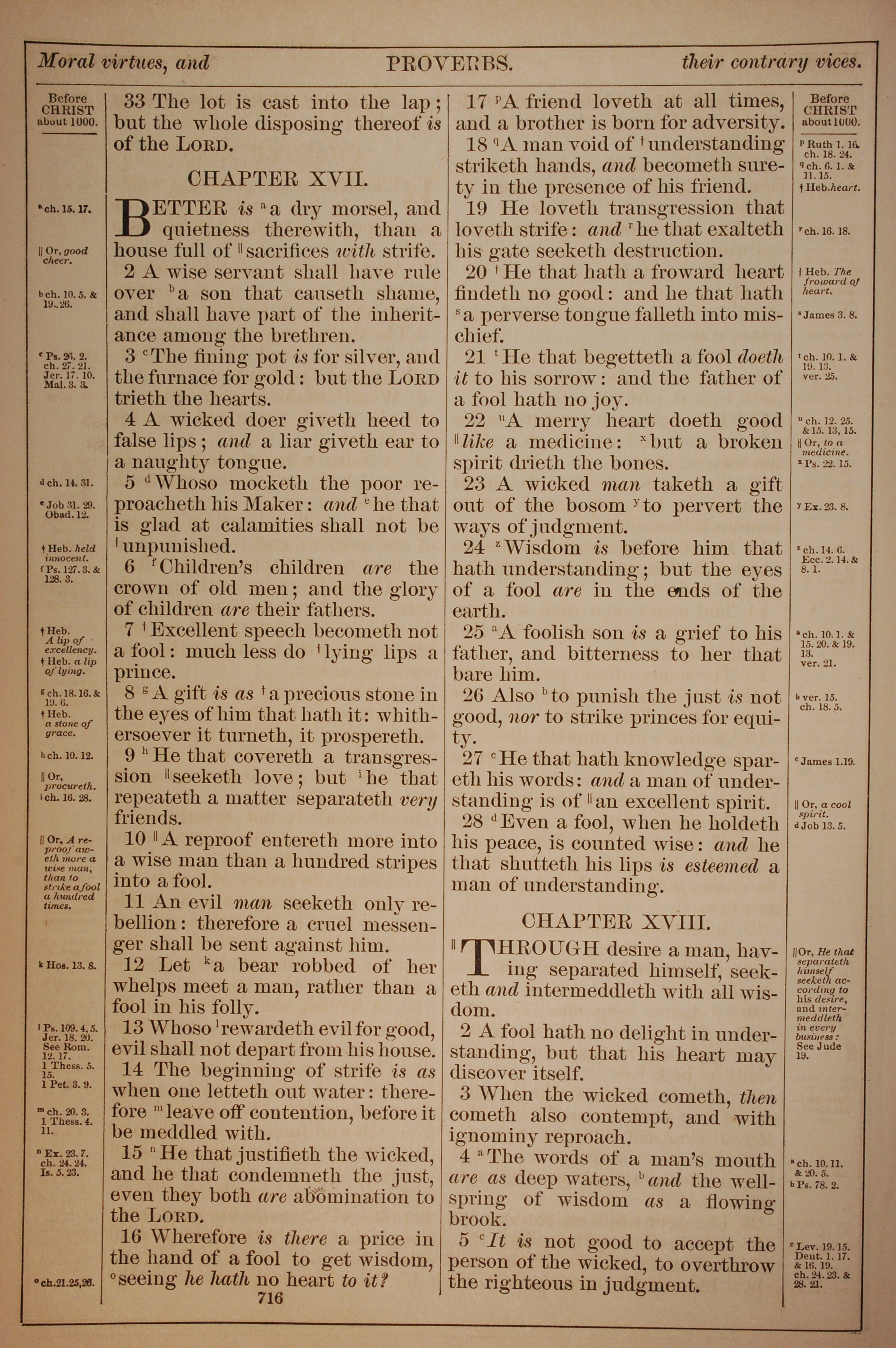 1882年Holy Bible 箴言 16 章 33 节到 18 章 5 节