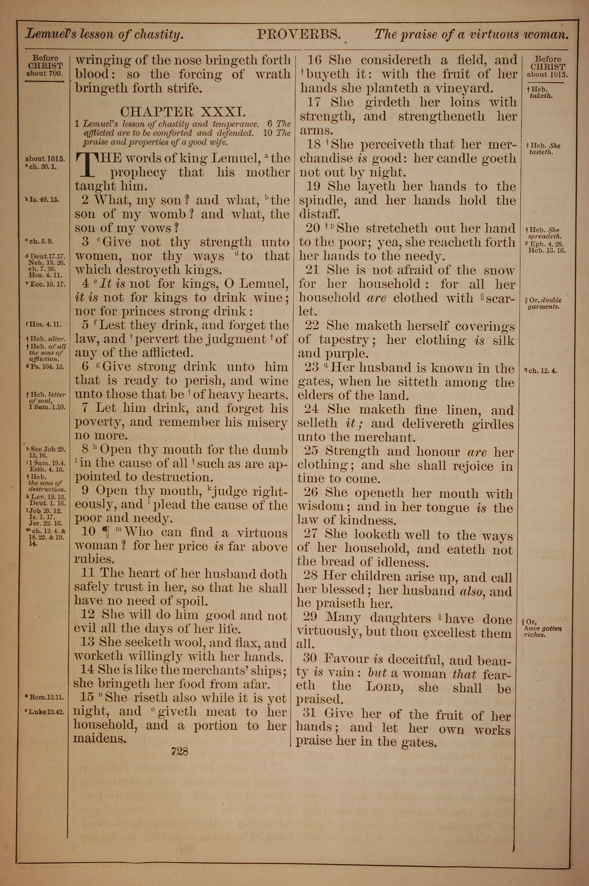 1882年Holy Bible 箴言 31 章 1 节到 31 章 31 节