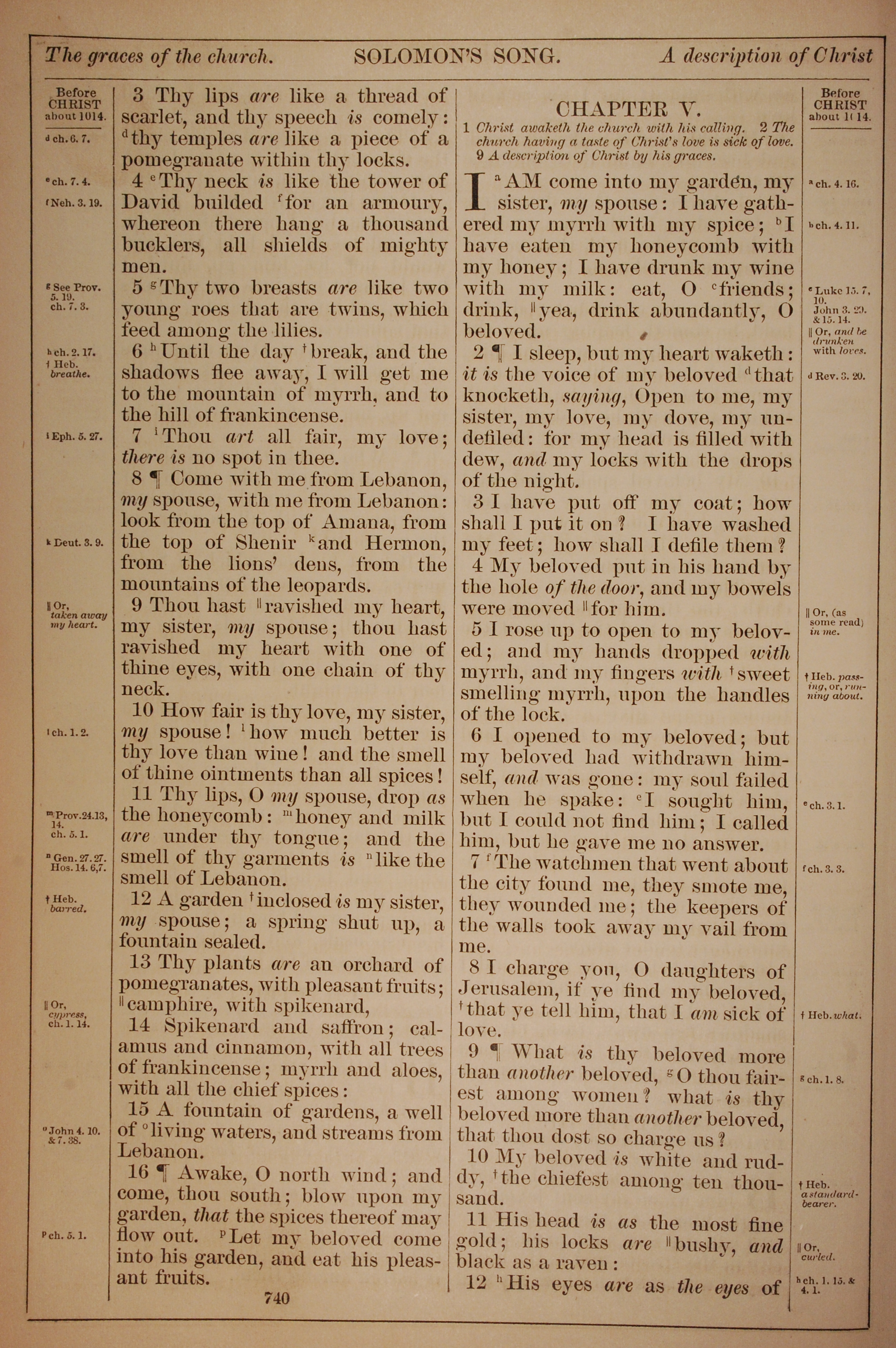 1882年Holy Bible 雅歌 4 章 3 节到 5 章 12 节
