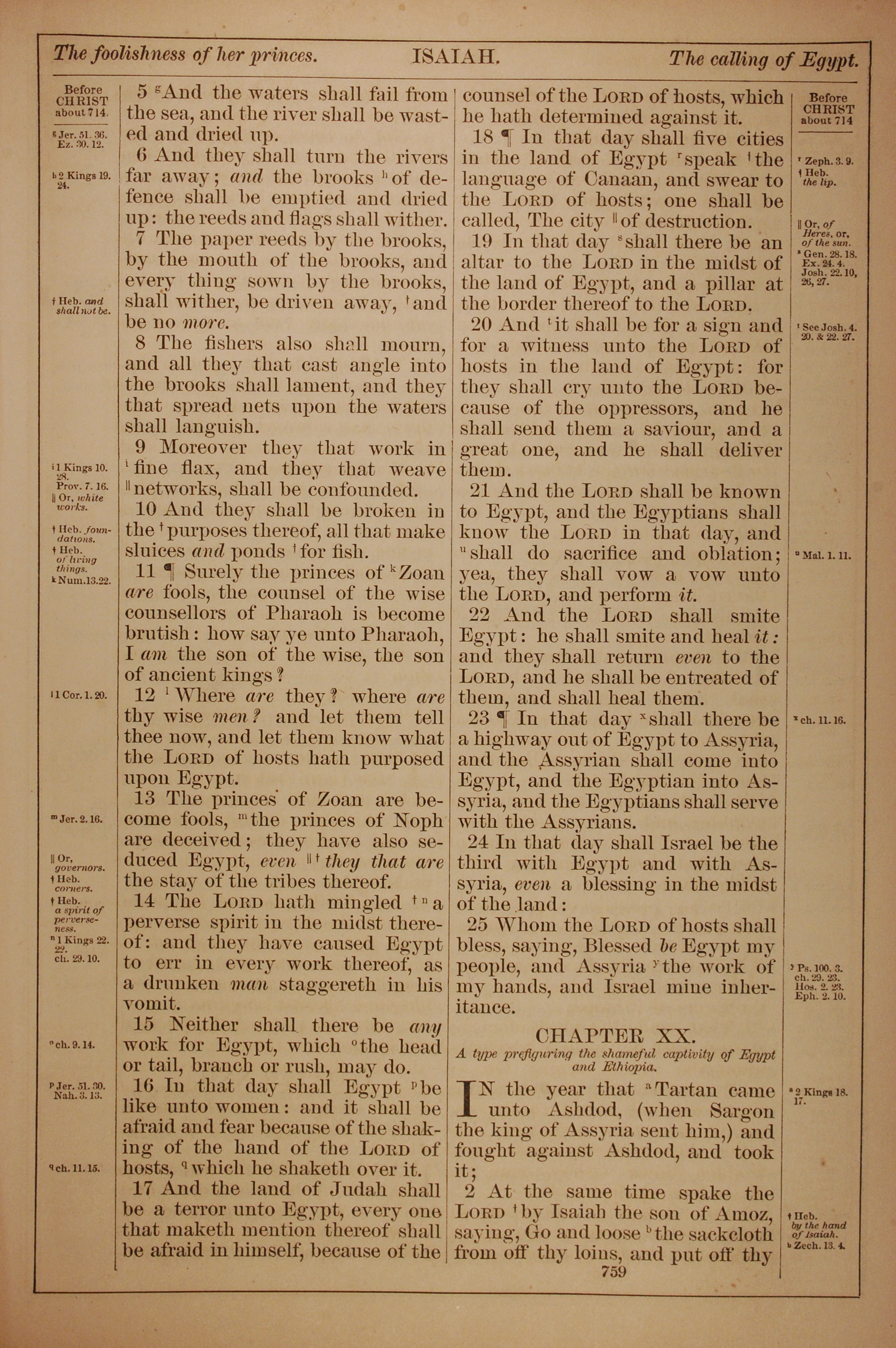 1882年Holy Bible 以赛亚书 19 章 5 节到 20 章 2 节
