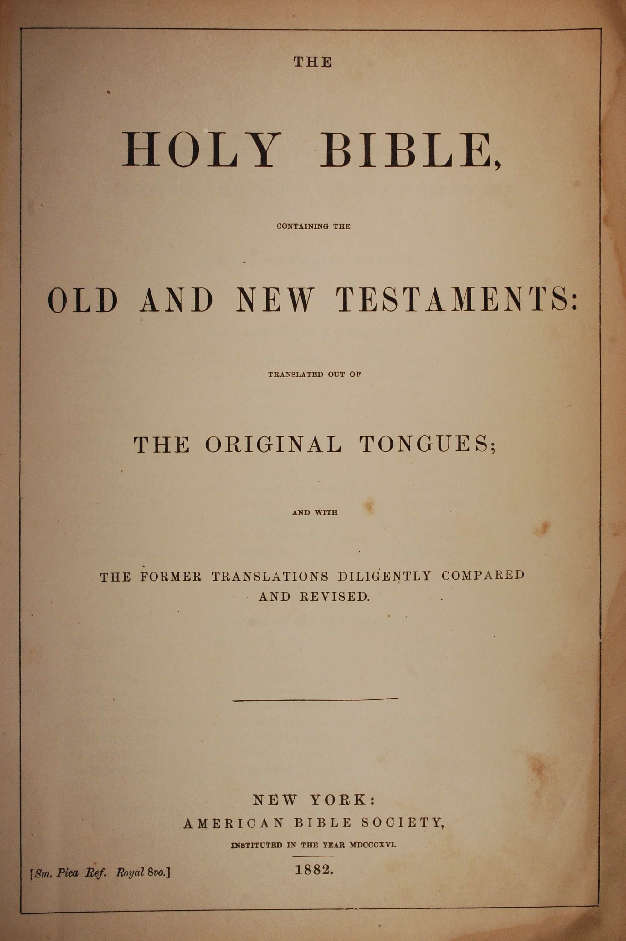 1882年Holy Bible 封面 0 章 7 节到 0 章 7 节