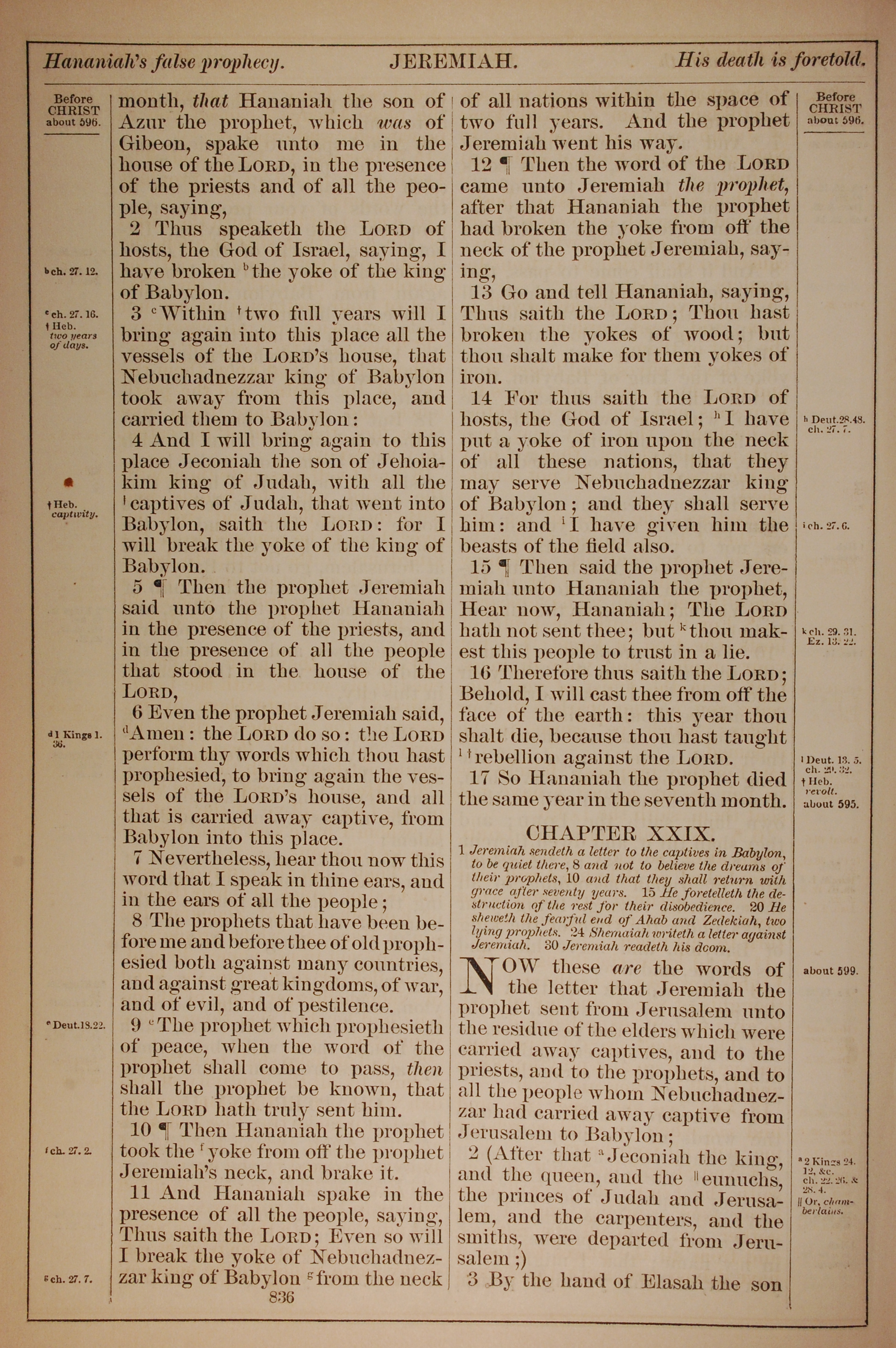 1882年Holy Bible 耶利米书 28 章 2 节到 29 章 3 节