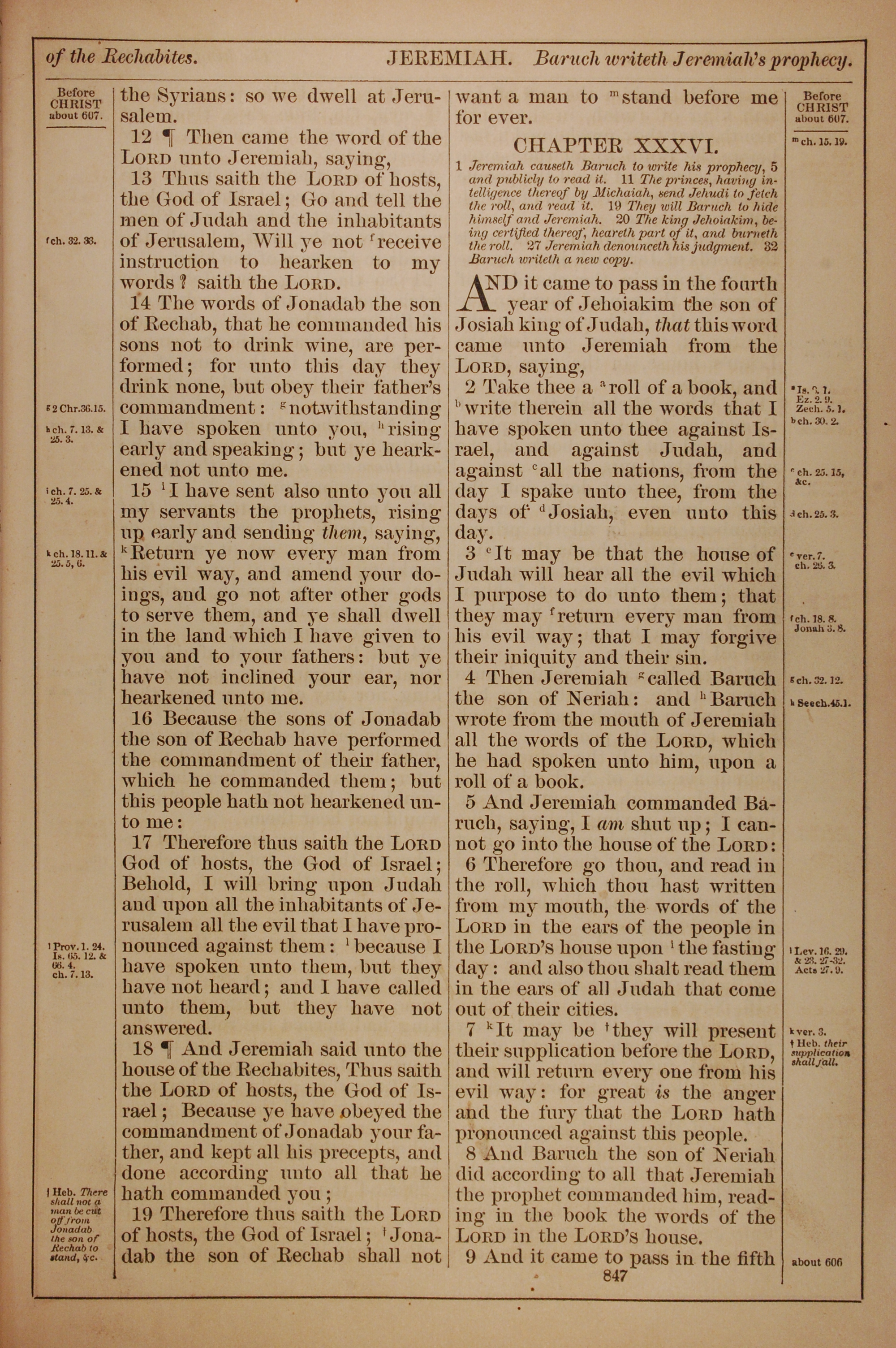1882年Holy Bible 耶利米书 35 章 12 节到 36 章 8 节