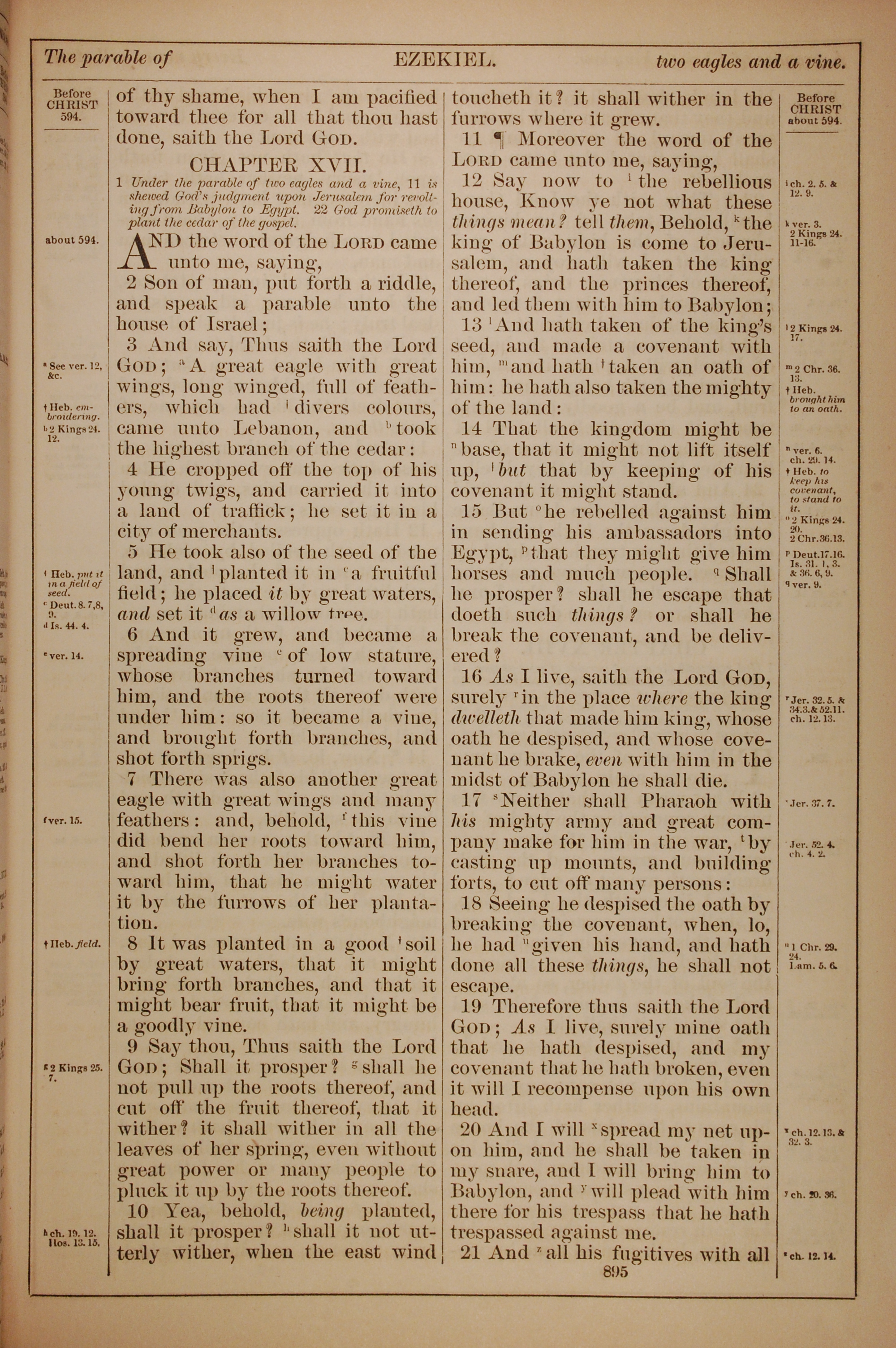 1882年Holy Bible 以西结书 17 章 1 节到 17 章 21 节