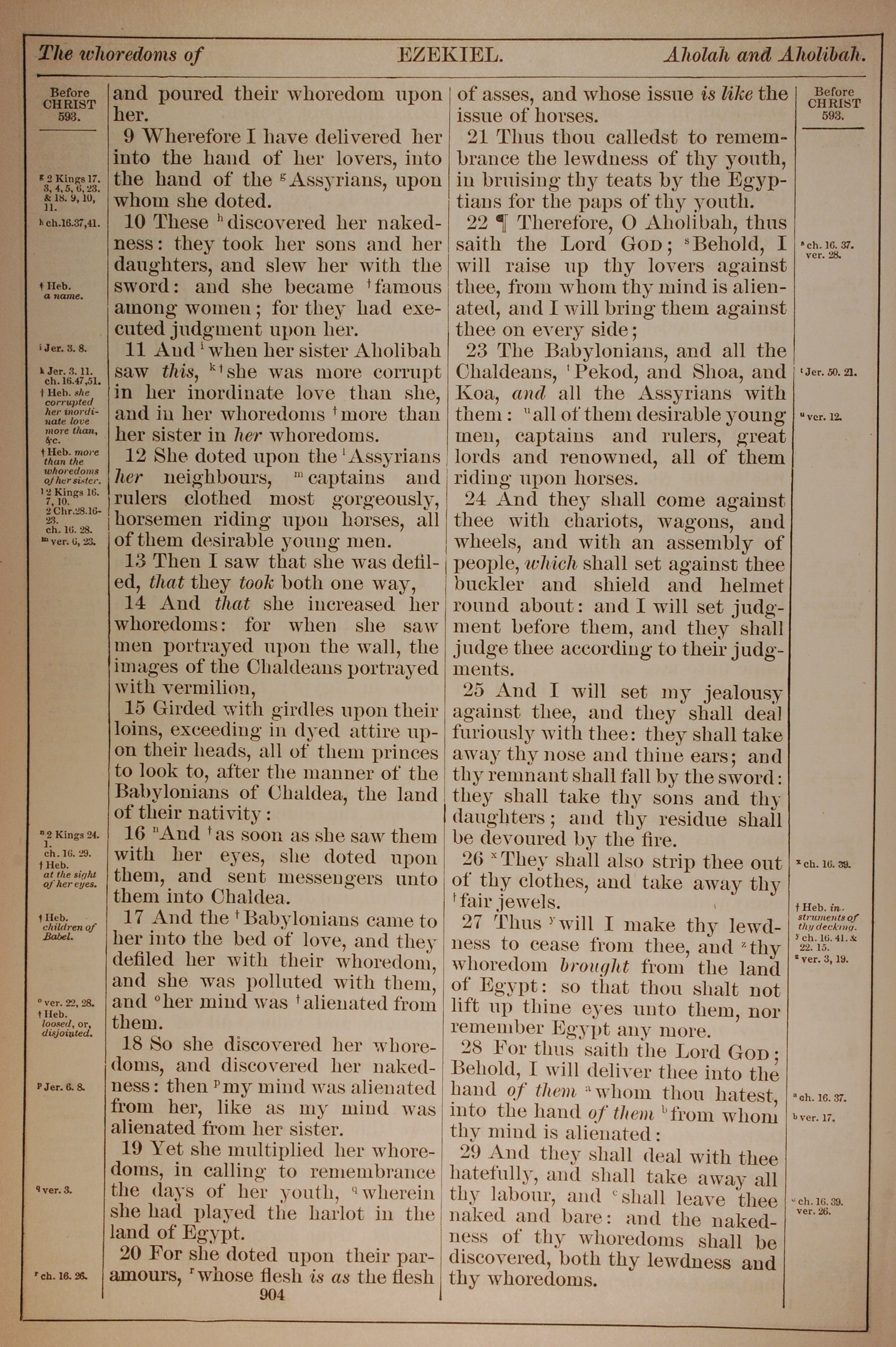 1882年Holy Bible 以西结书 23 章 9 节到 23 章 29 节