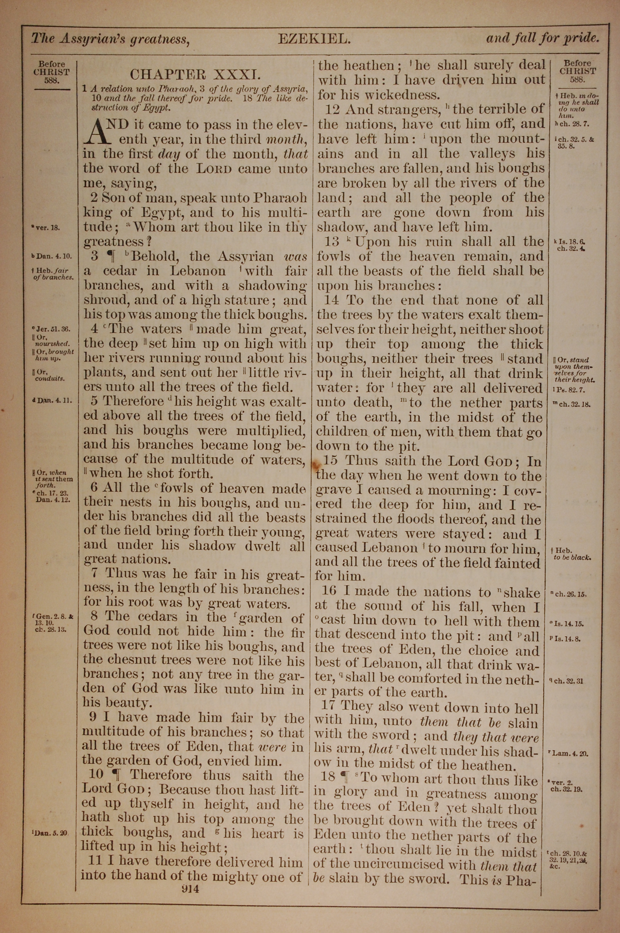 1882年Holy Bible 以西结书 31 章 1 节到 31 章 18 节