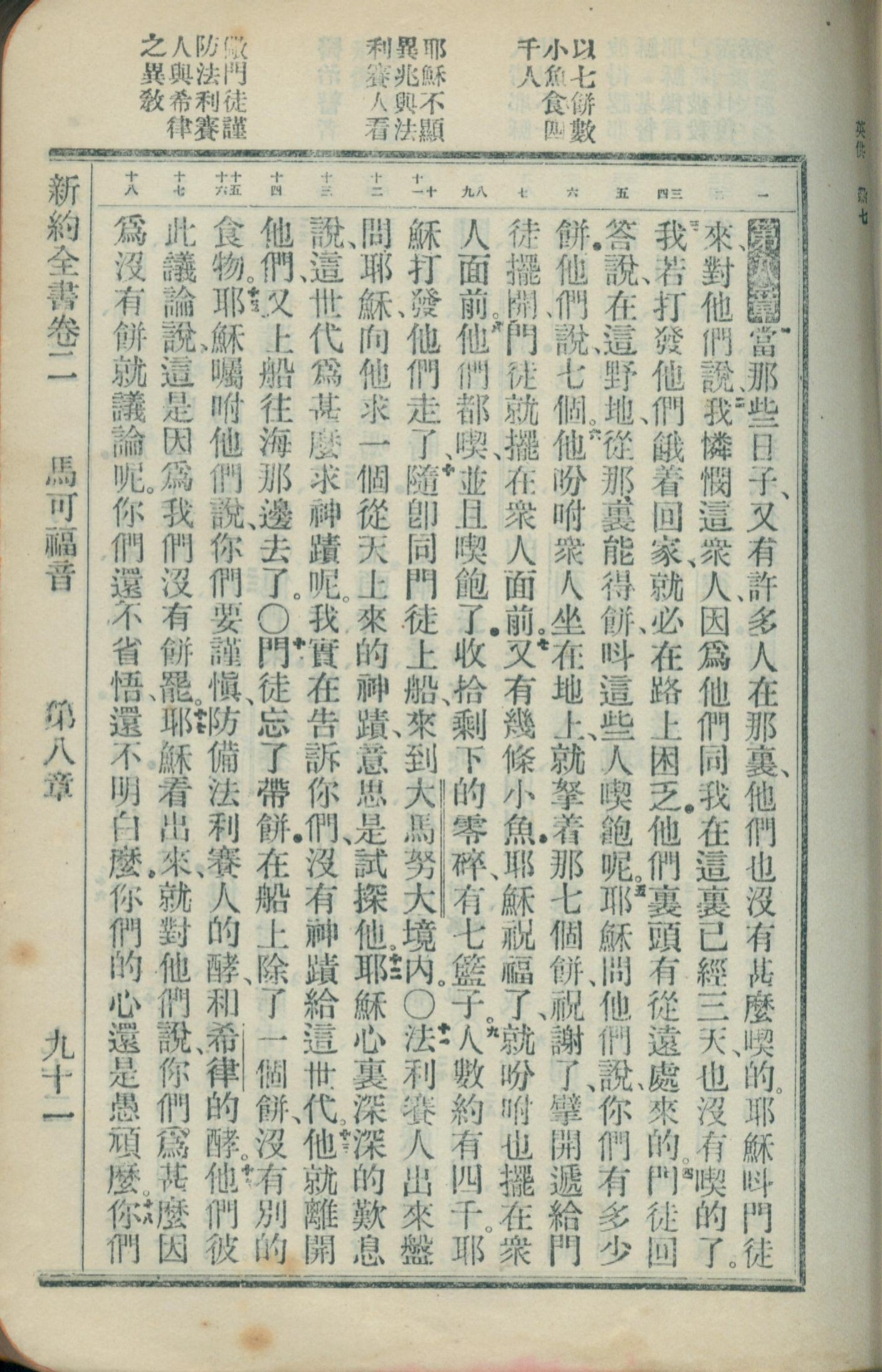 1908年新约全书(官话和合本) 马可福音 8 章 1 节到 8 章 18 节