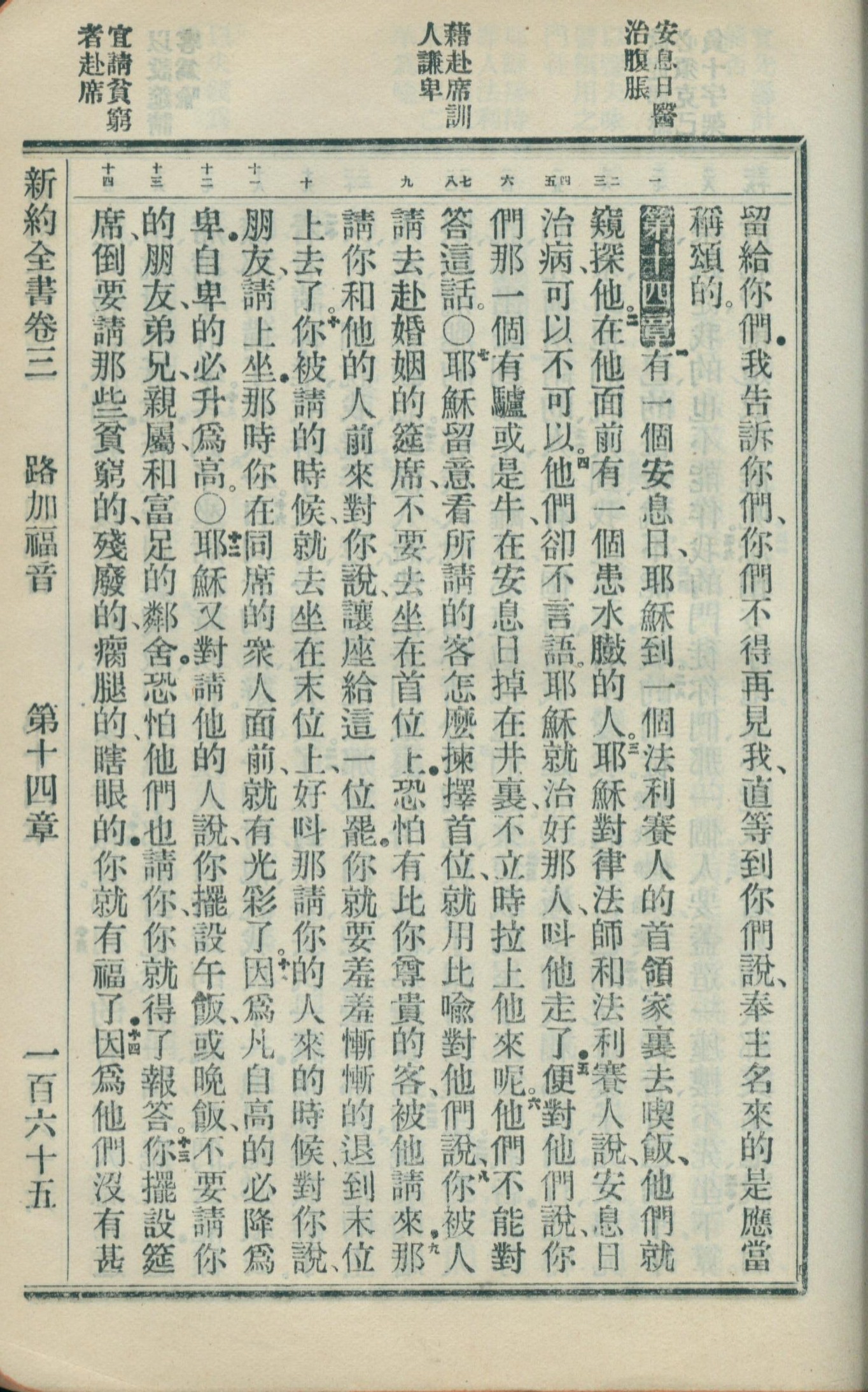 1908年新约全书(官话和合本) 路加福音 14 章 1 节到 14 章 14 节