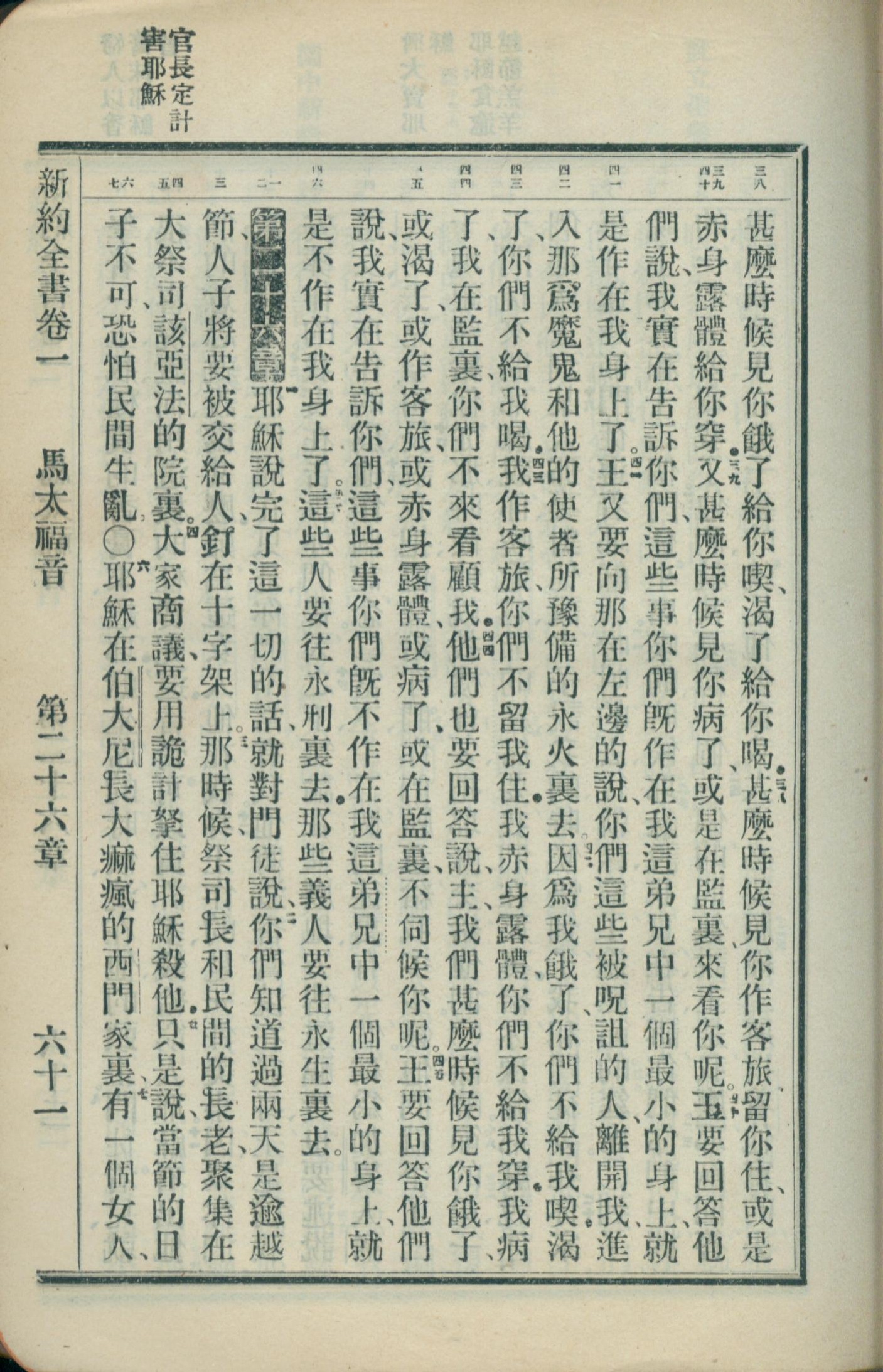 1908年新约全书(官话和合本) 马太福音 25 章 38 节到 26 章 7 节
