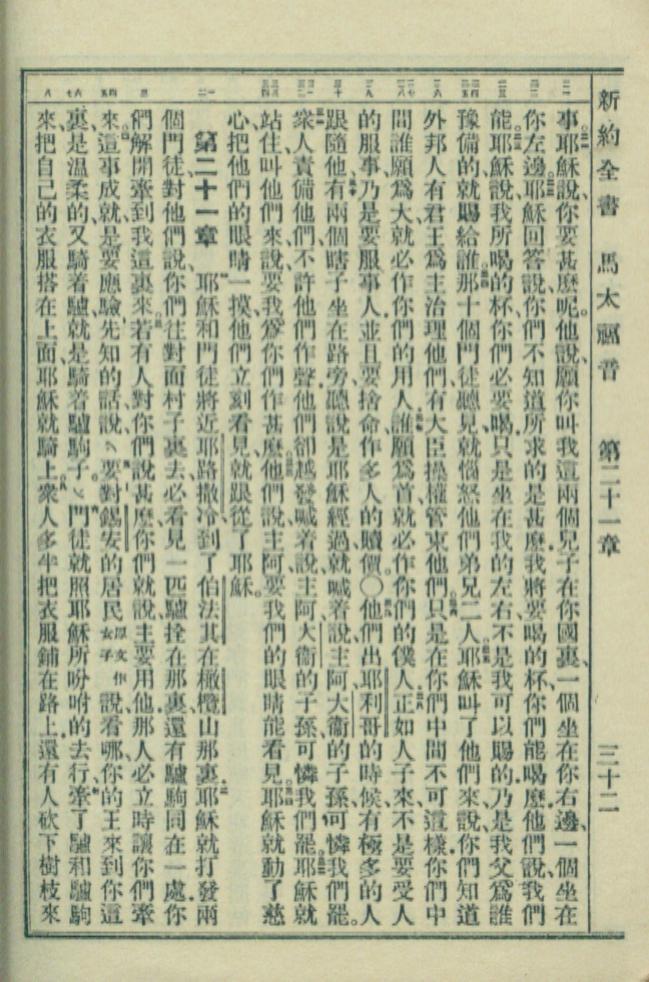 1949年新约全书 马太福音 20 章 21 节到 21 章 8 节