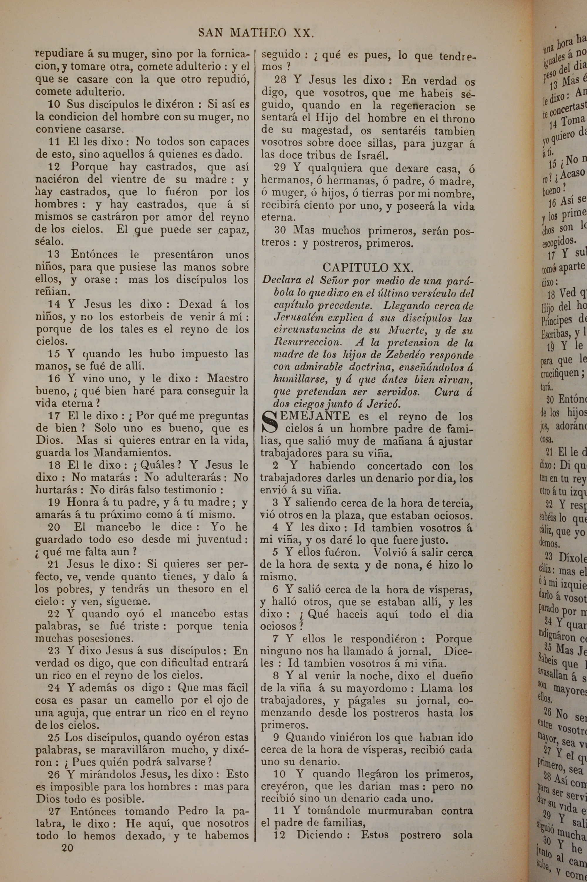 1858年La Biblia 马太福音 19 章 10 节到 20 章 12 节