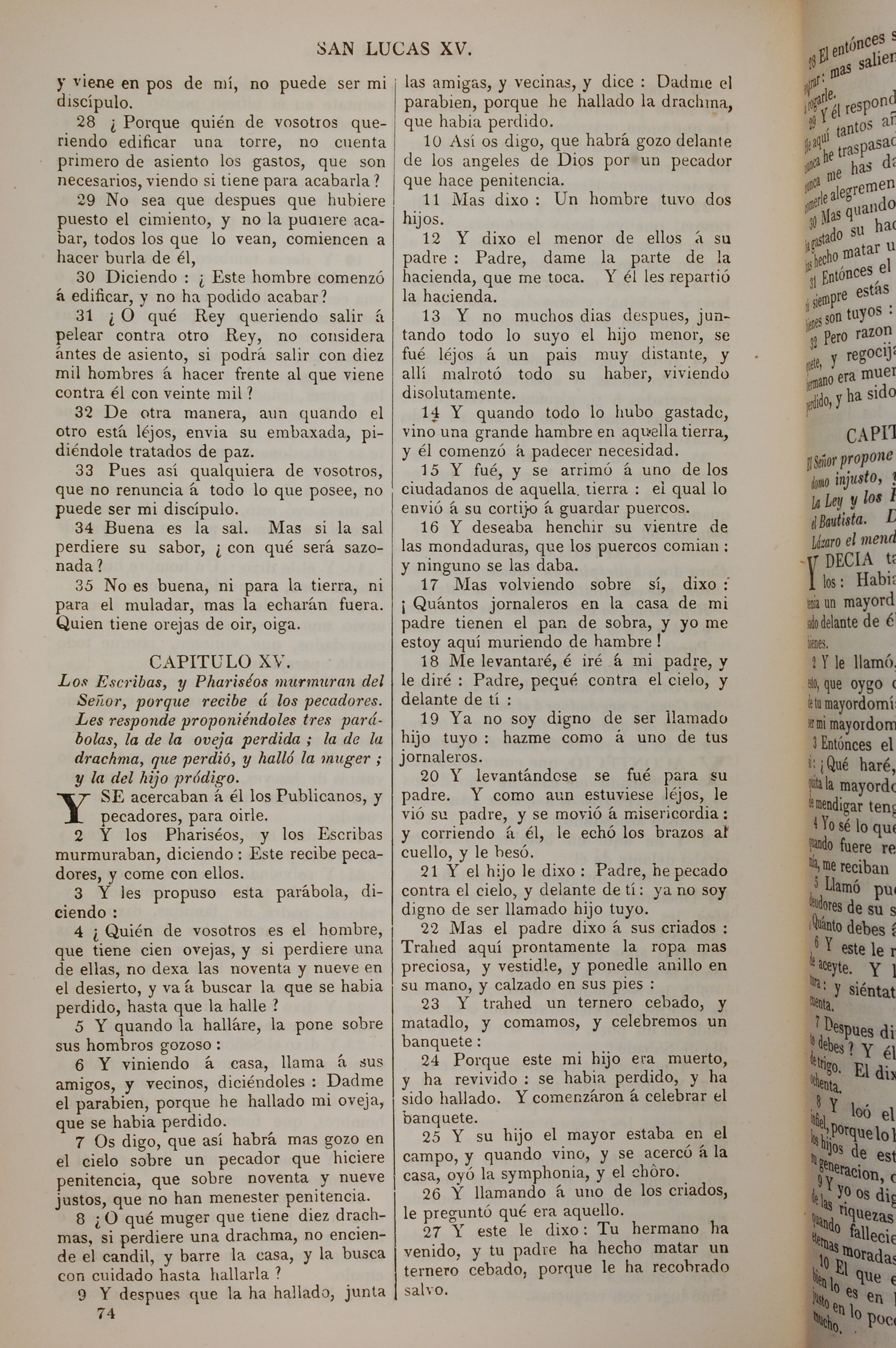 1858年La Biblia 路加福音 14 章 28 节到 15 章 27 节