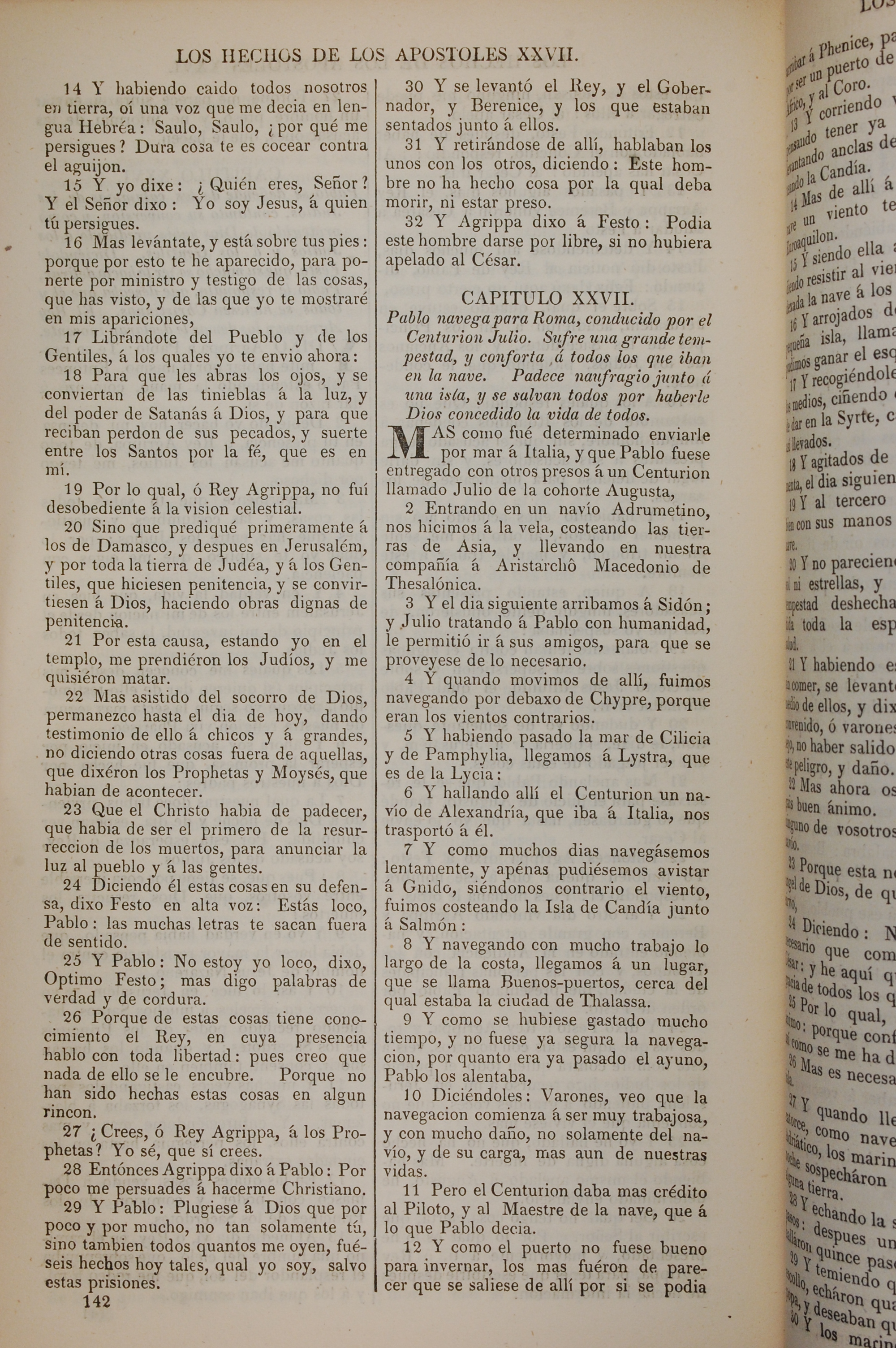 1858年La Biblia 使徒行传 26 章 14 节到 27 章 12 节