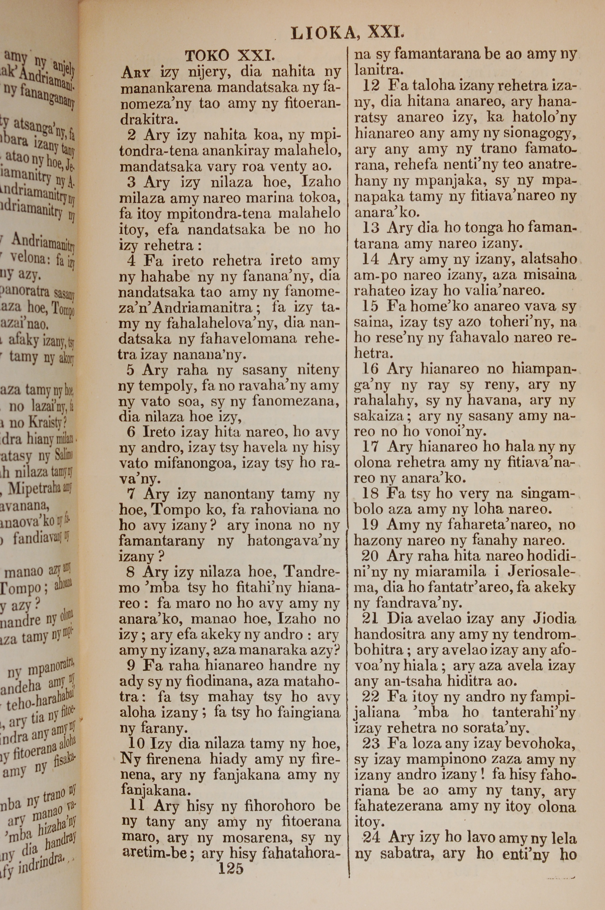 1830年Teny N'andriamanitra 路加福音 21 章 1 节到 21 章 24 节