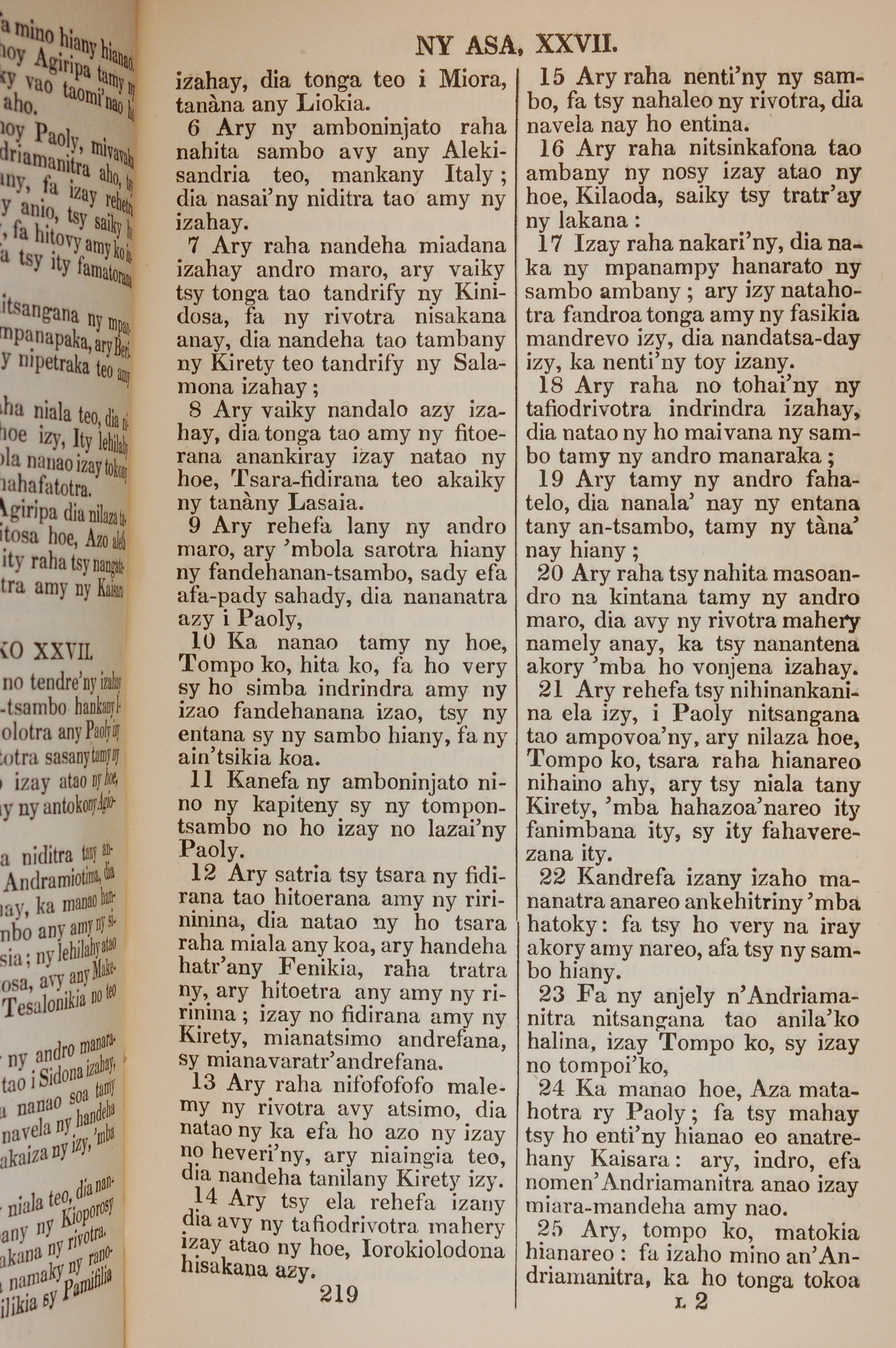1830年Teny N'andriamanitra 使徒行传 27 章 6 节到 27 章 25 节