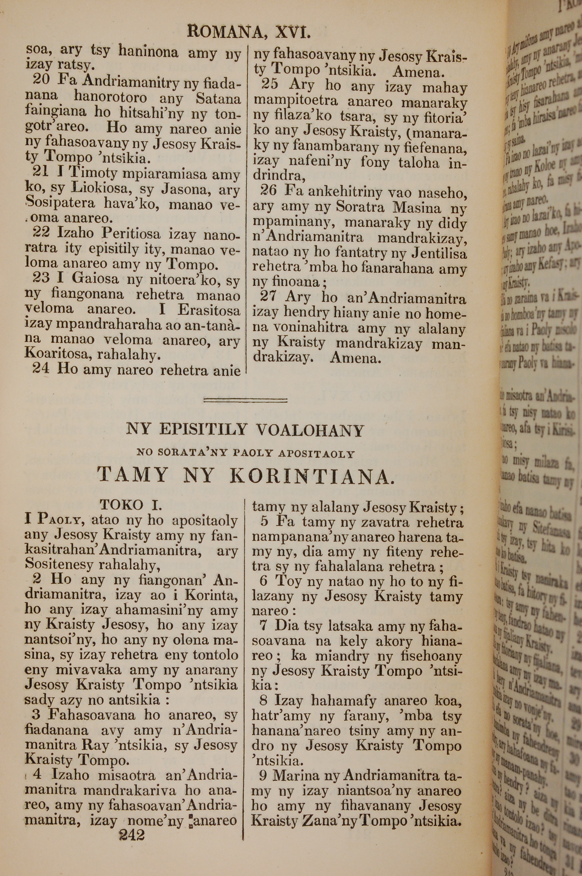 1830年Teny N'andriamanitra 罗马书 16 章 20 节到 16 章 27 节