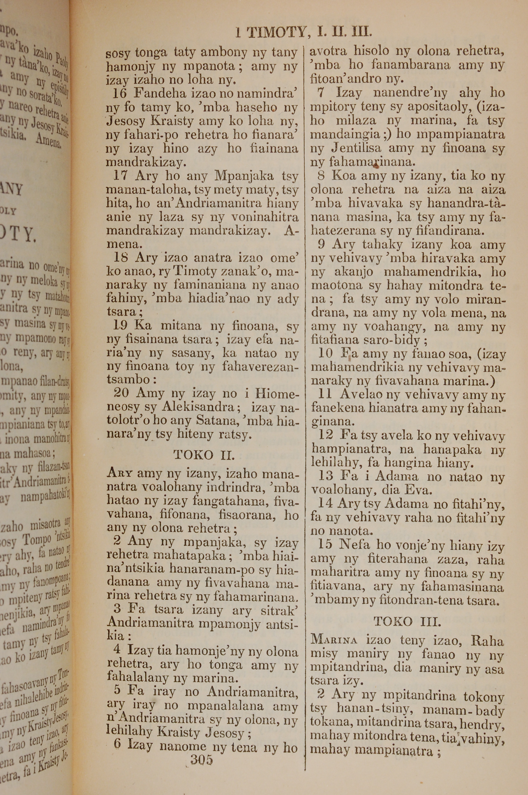1830年Teny N'andriamanitra 提摩太前书 1 章 16 节到 3 章 2 节