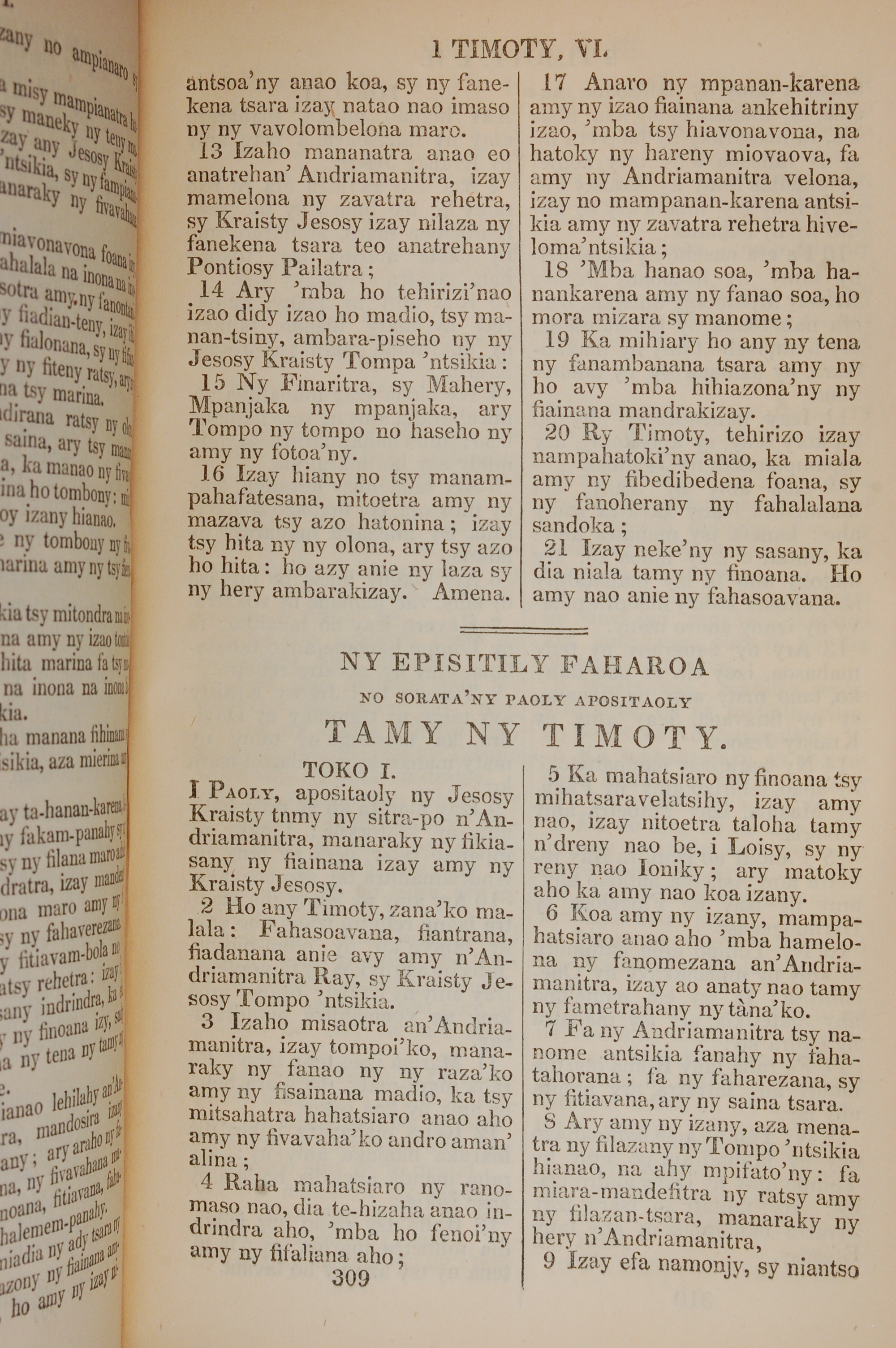 1830年Teny N'andriamanitra 提摩太后书 1 章 1 节到 1 章 9 节