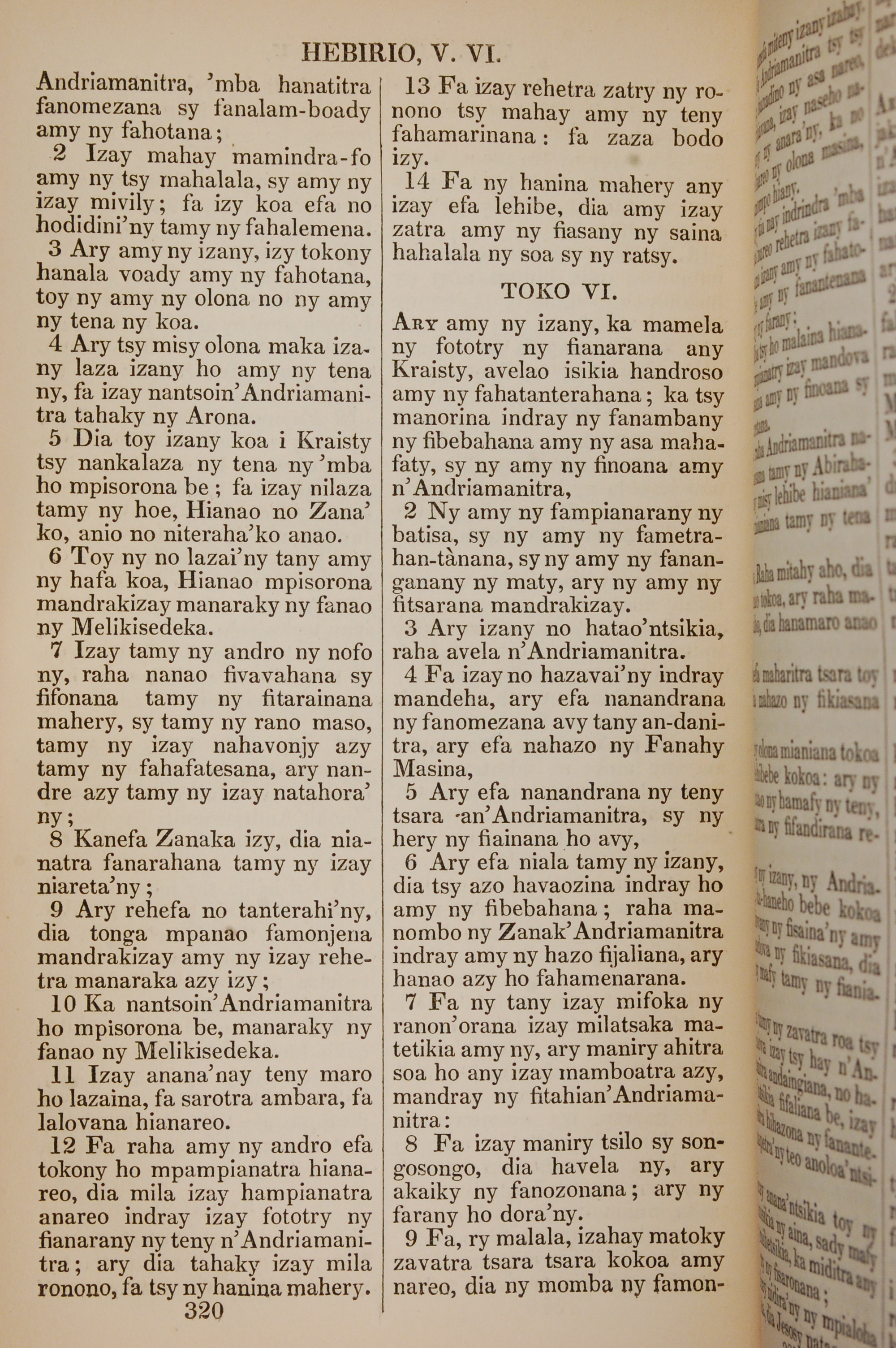 1830年Teny N'andriamanitra 希伯来书 5 章 2 节到 6 章 9 节