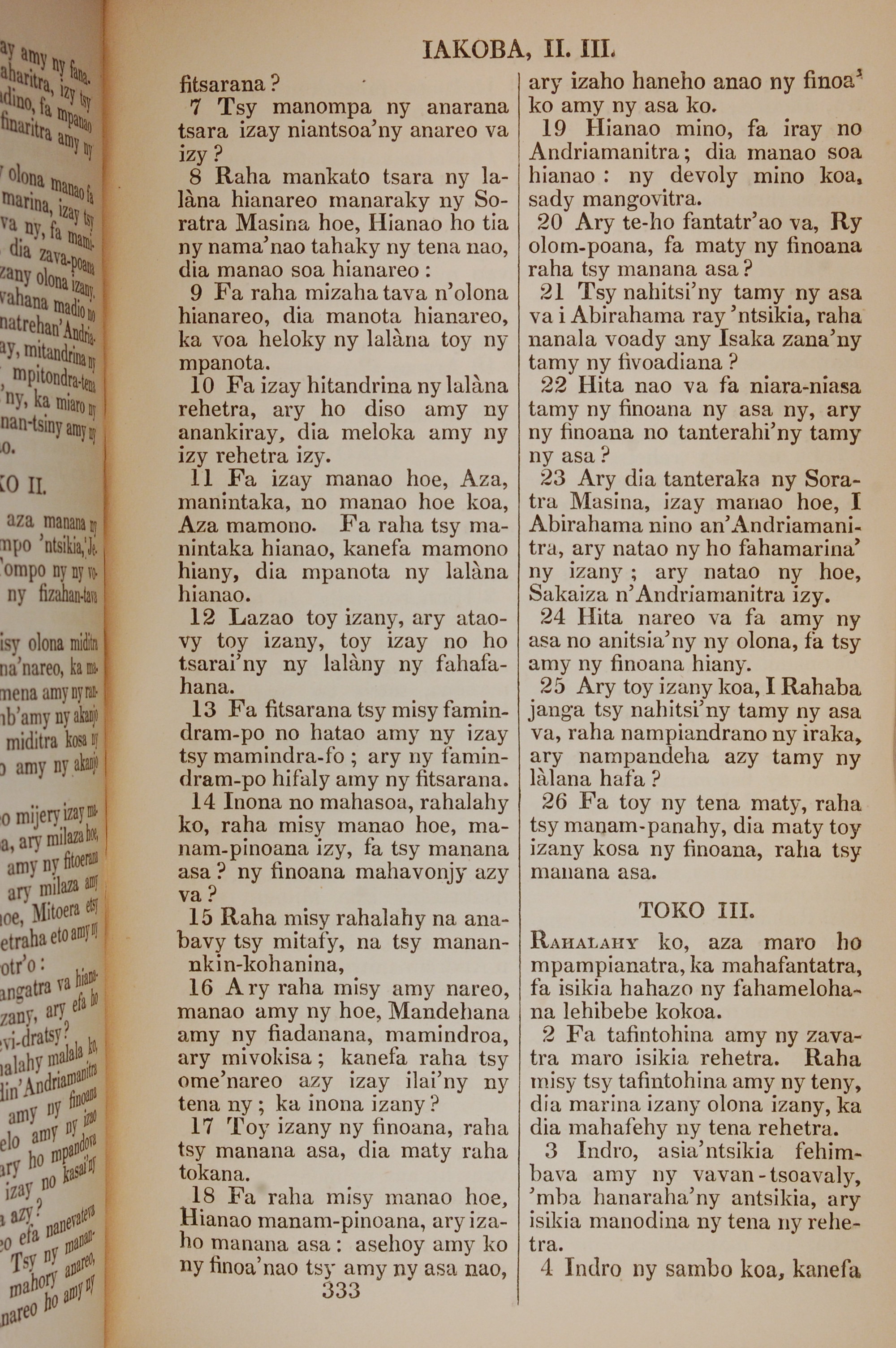 1830年Teny N'andriamanitra 雅各书 2 章 7 节到 3 章 4 节