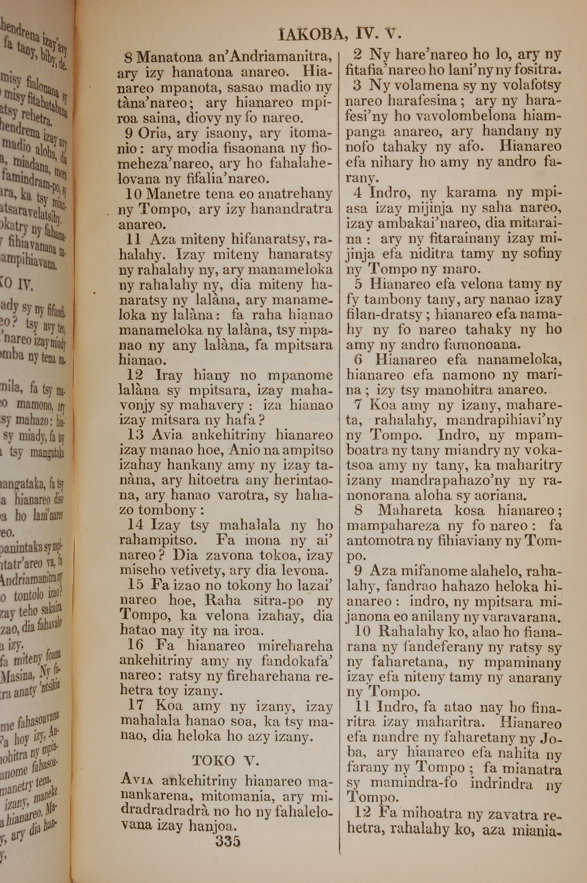1830年Teny N'andriamanitra 雅各书 4 章 8 节到 5 章 12 节