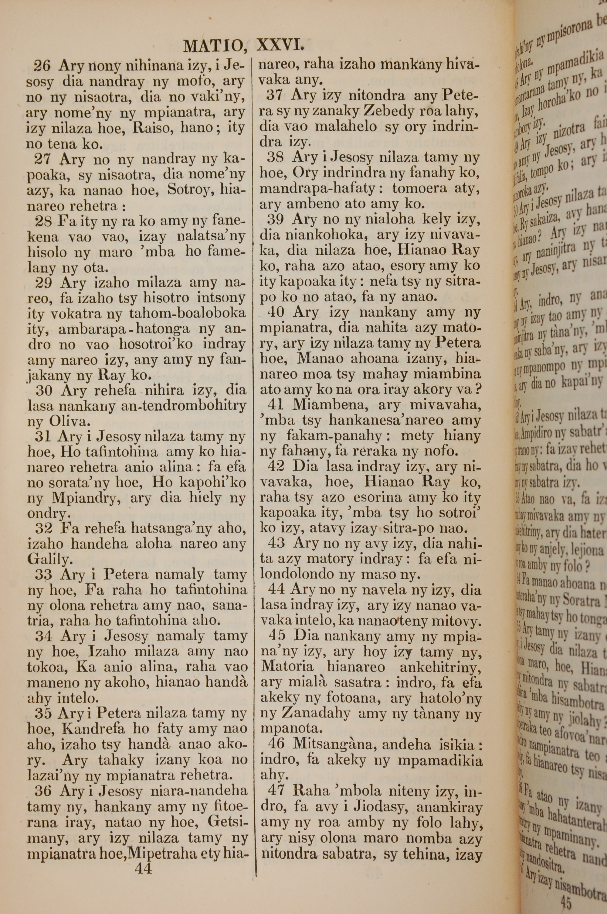 1830年Teny N'andriamanitra 马太福音 26 章 26 节到 26 章 47 节