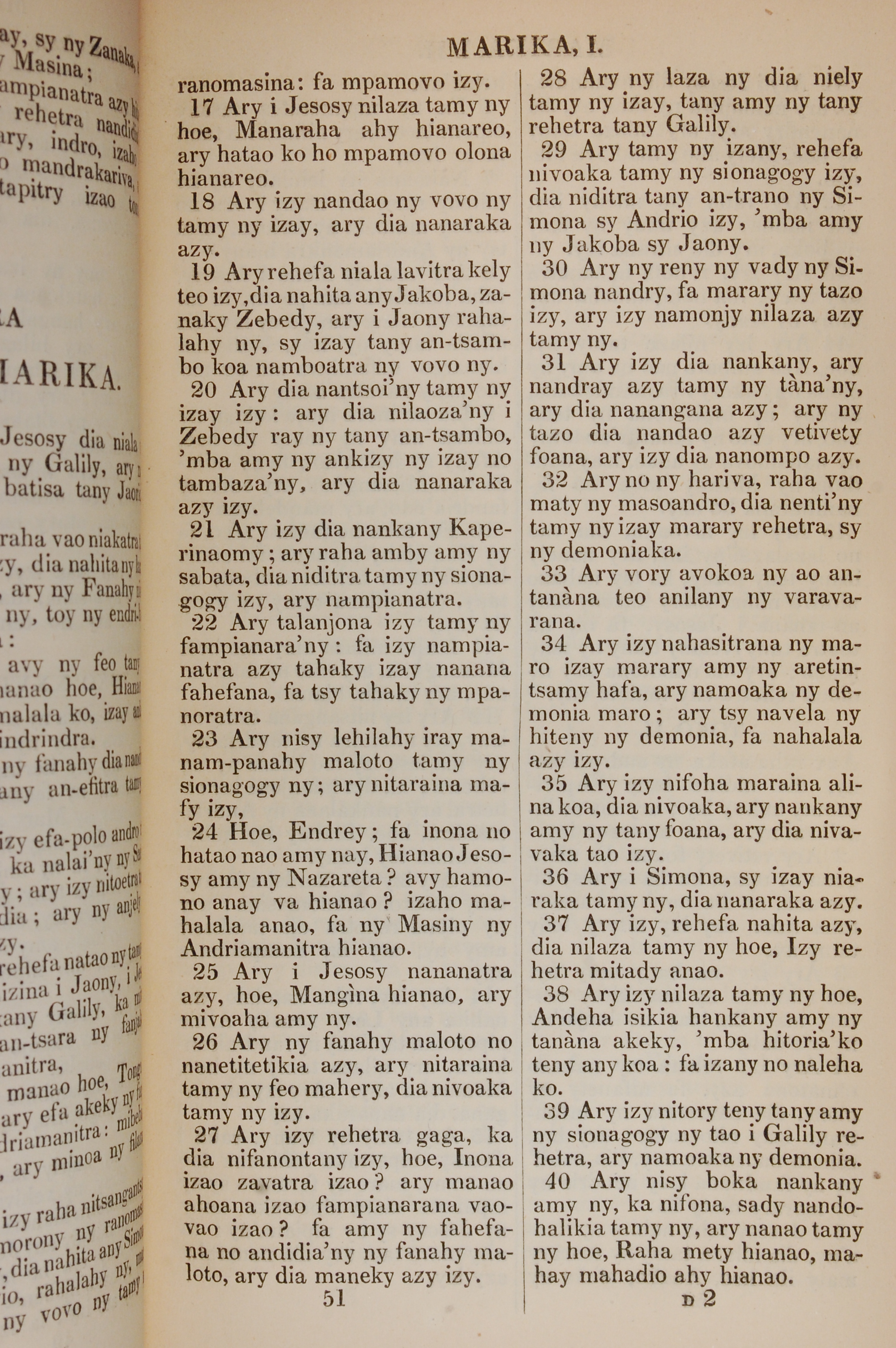 1830年Teny N'andriamanitra 马可福音 1 章 17 节到 1 章 40 节