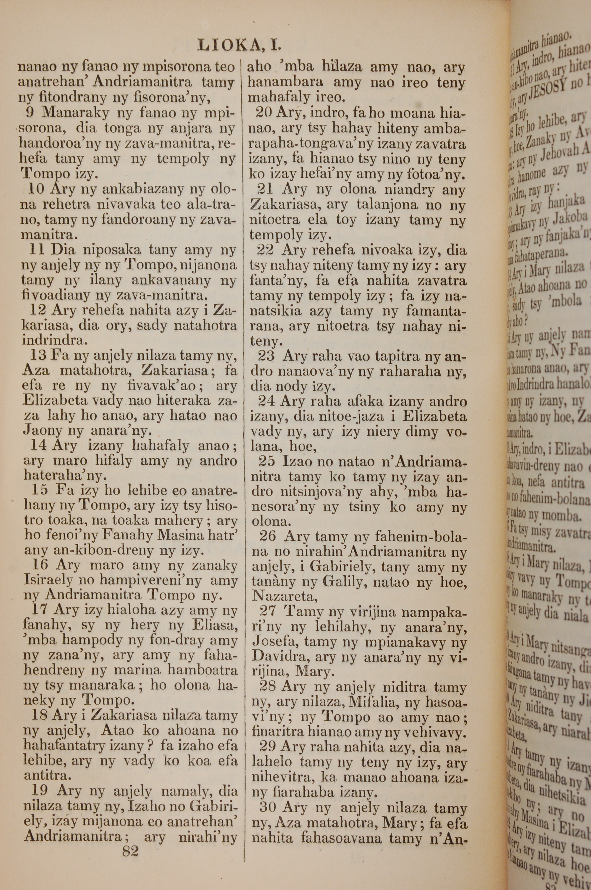1830年Teny N'andriamanitra 路加福音 1 章 9 节到 1 章 30 节