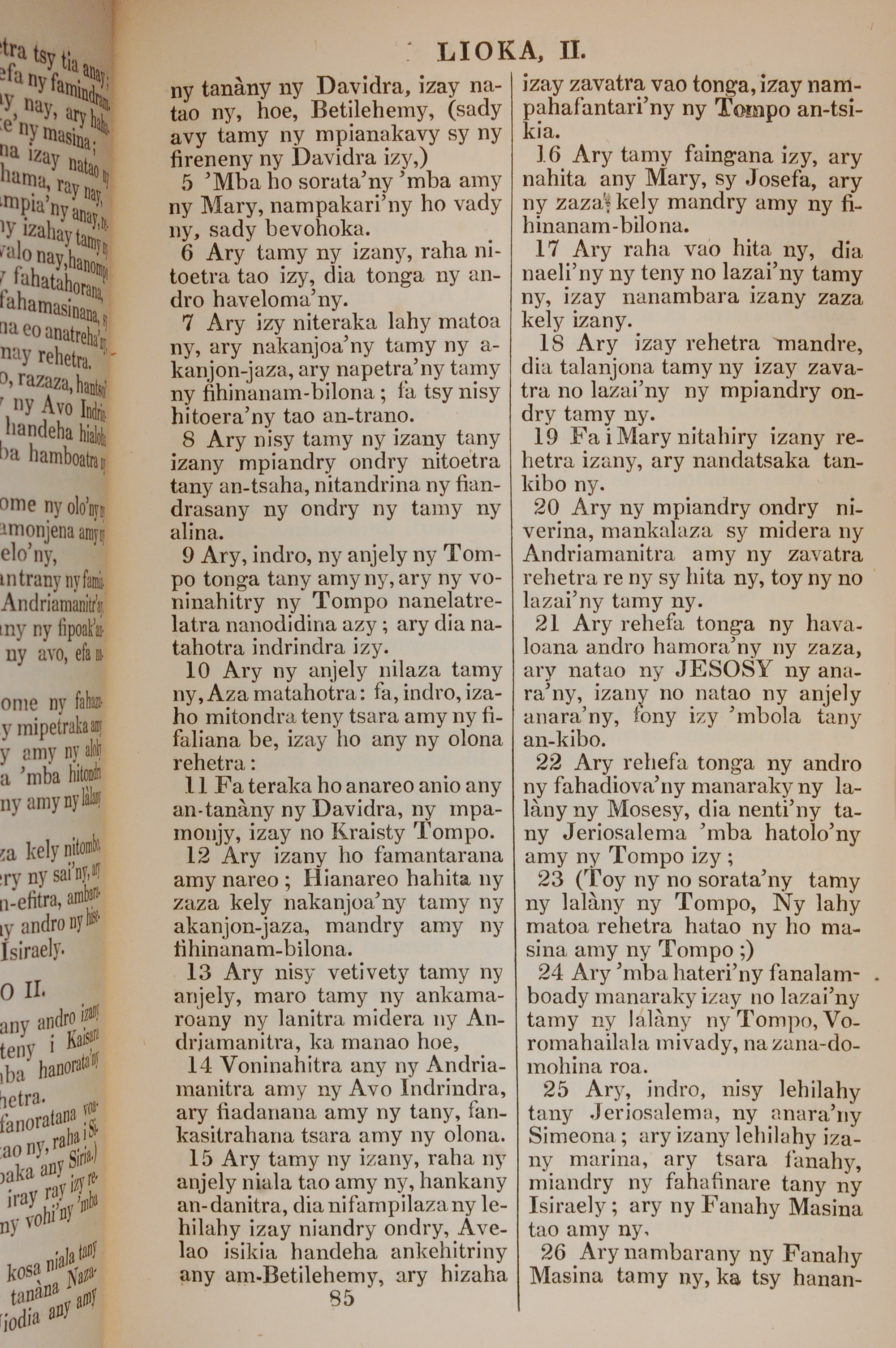 1830年Teny N'andriamanitra 路加福音 2 章 5 节到 2 章 26 节