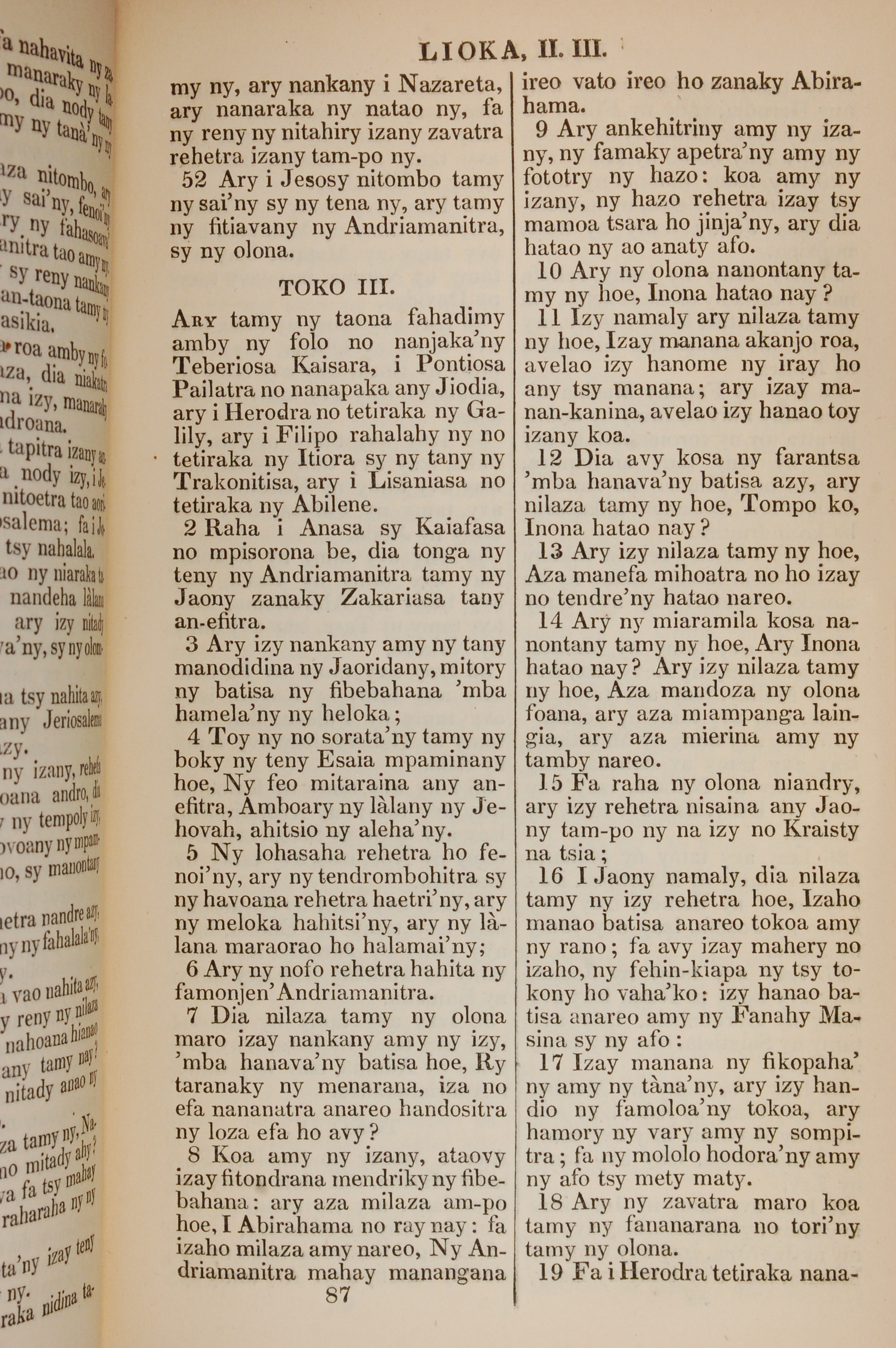 1830年Teny N'andriamanitra 路加福音 2 章 52 节到 3 章 19 节