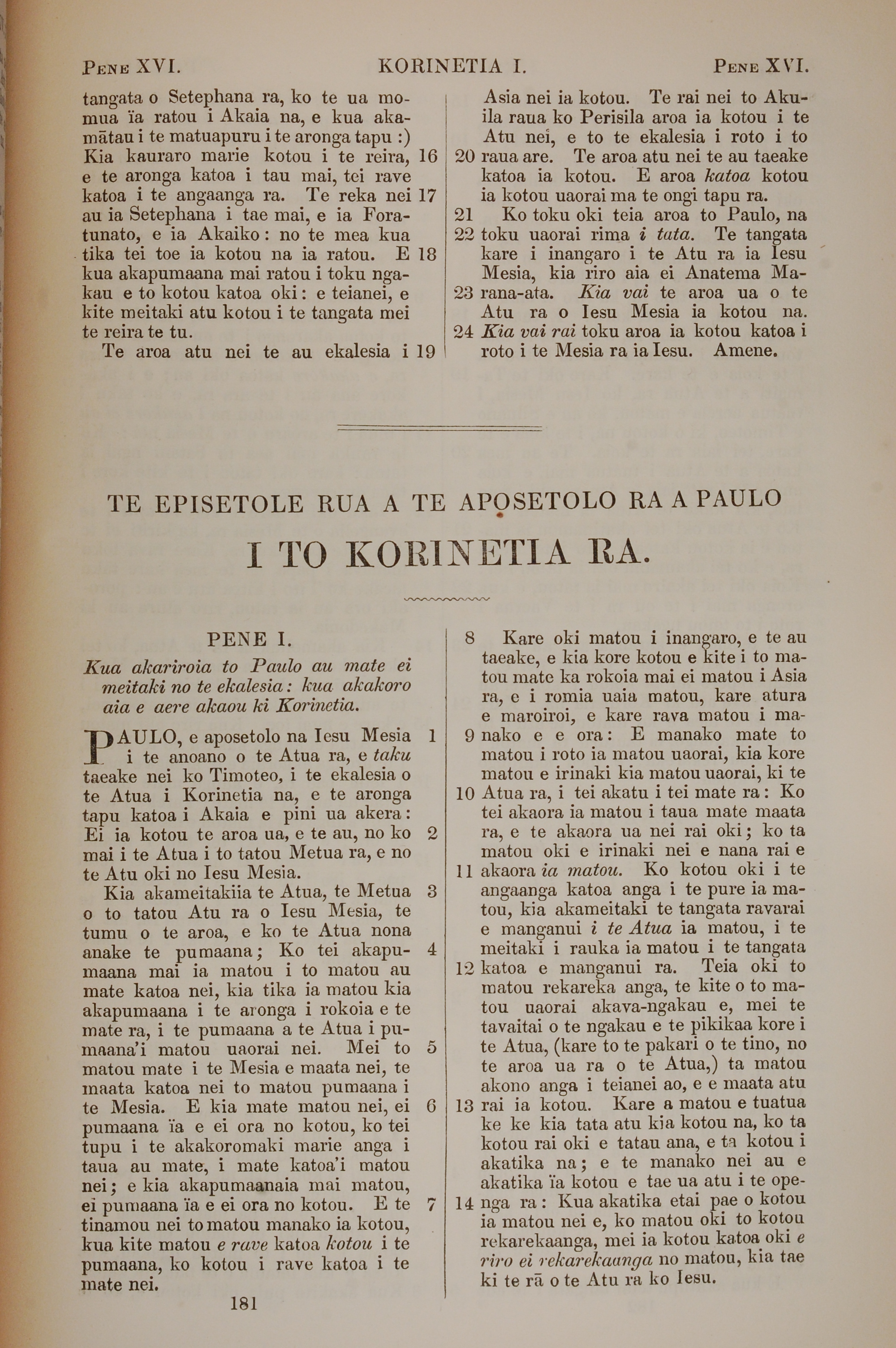 1851年BIBILA TAPU RA 哥林多后书 1 章 1 节到 1 章 14 节