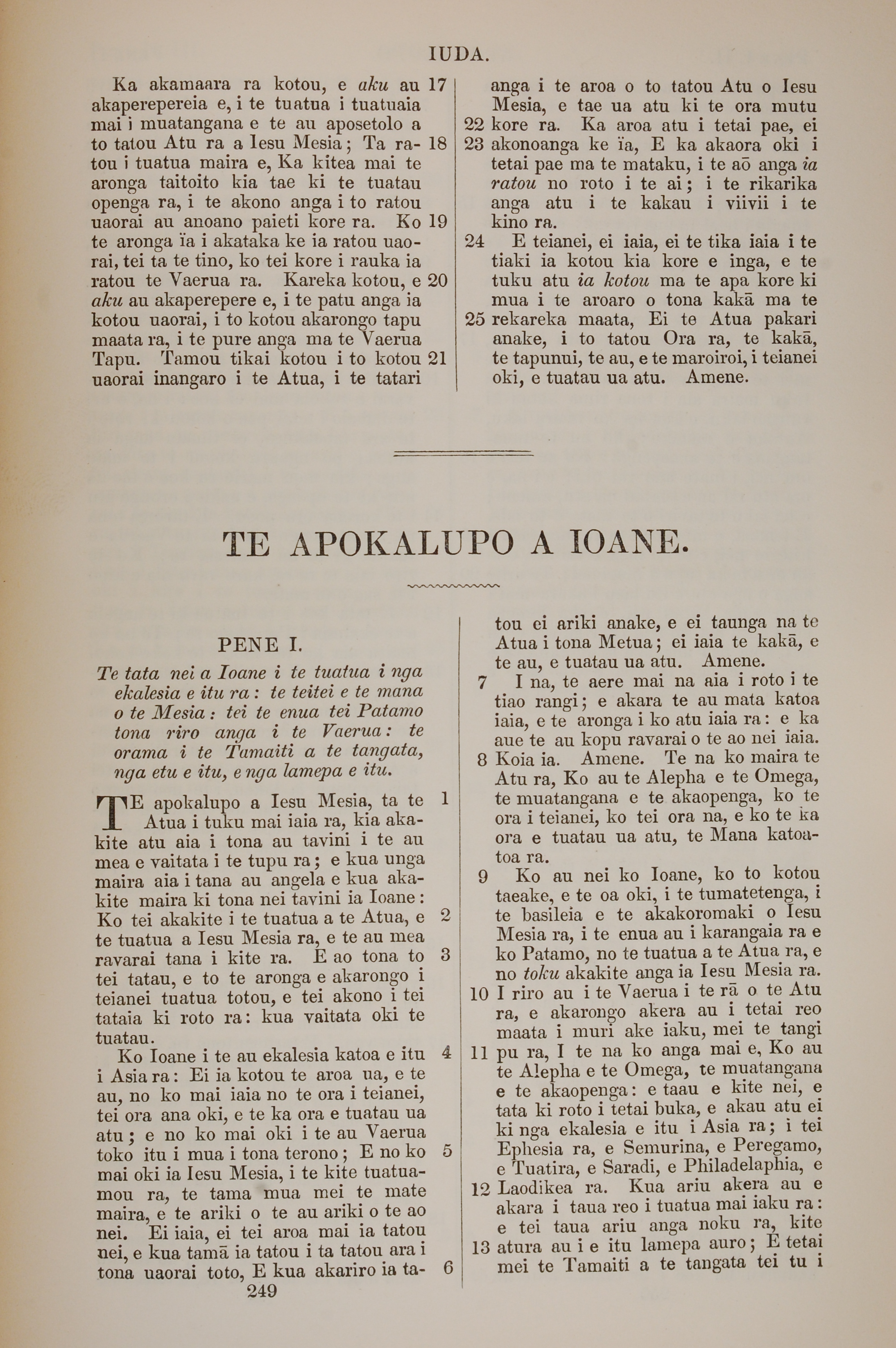 1851年BIBILA TAPU RA 启示录 1 章 1 节到 1 章 13 节