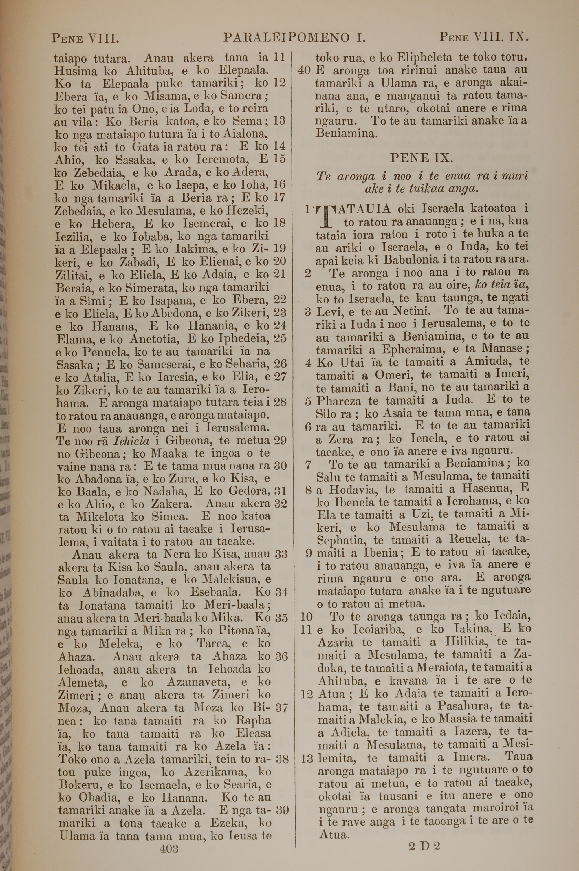 1851年BIBILA TAPU RA 历代志上 8 章 11 节到 9 章 13 节