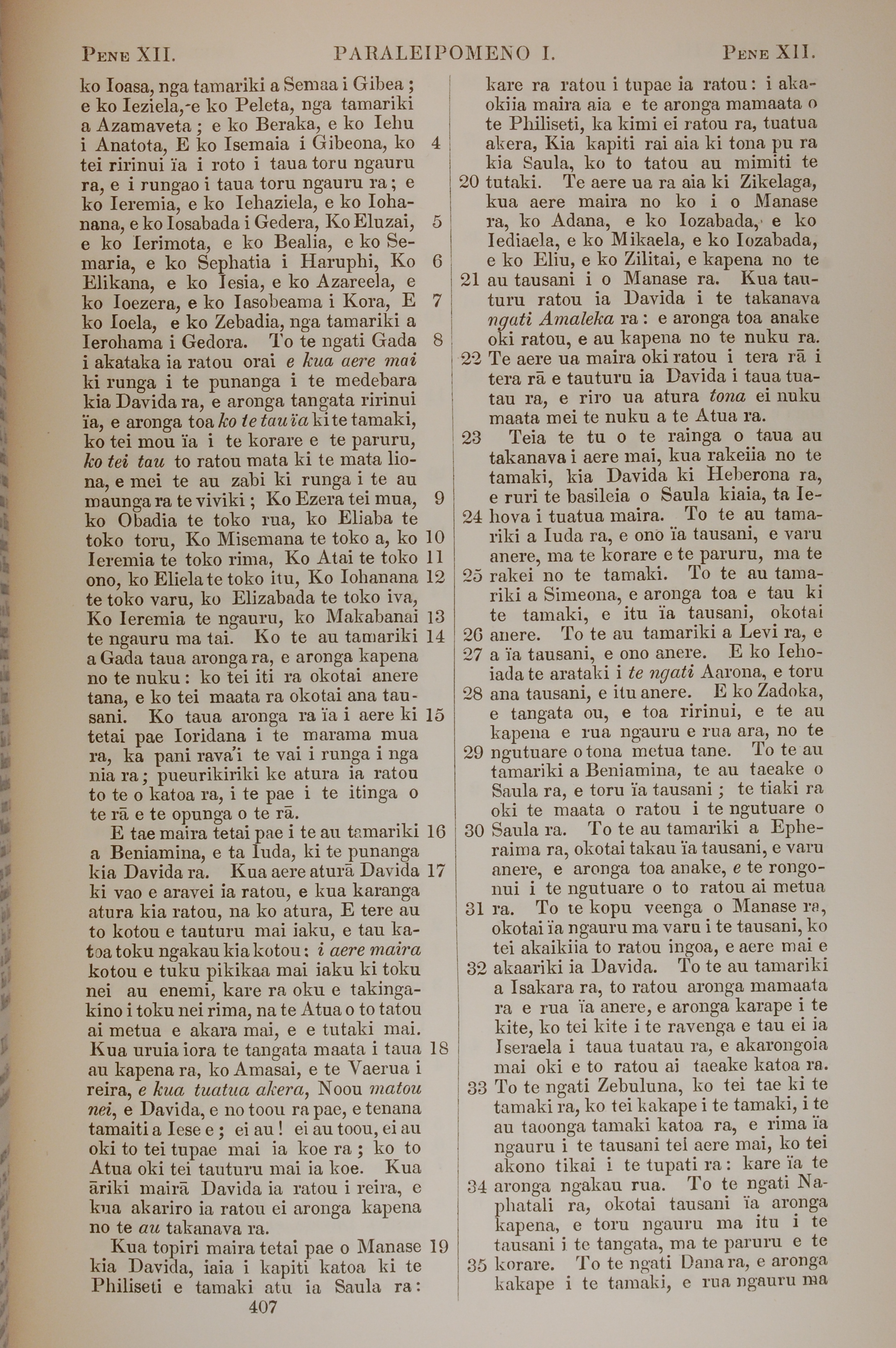 1851年BIBILA TAPU RA 历代志上 12 章 4 节到 12 章 35 节