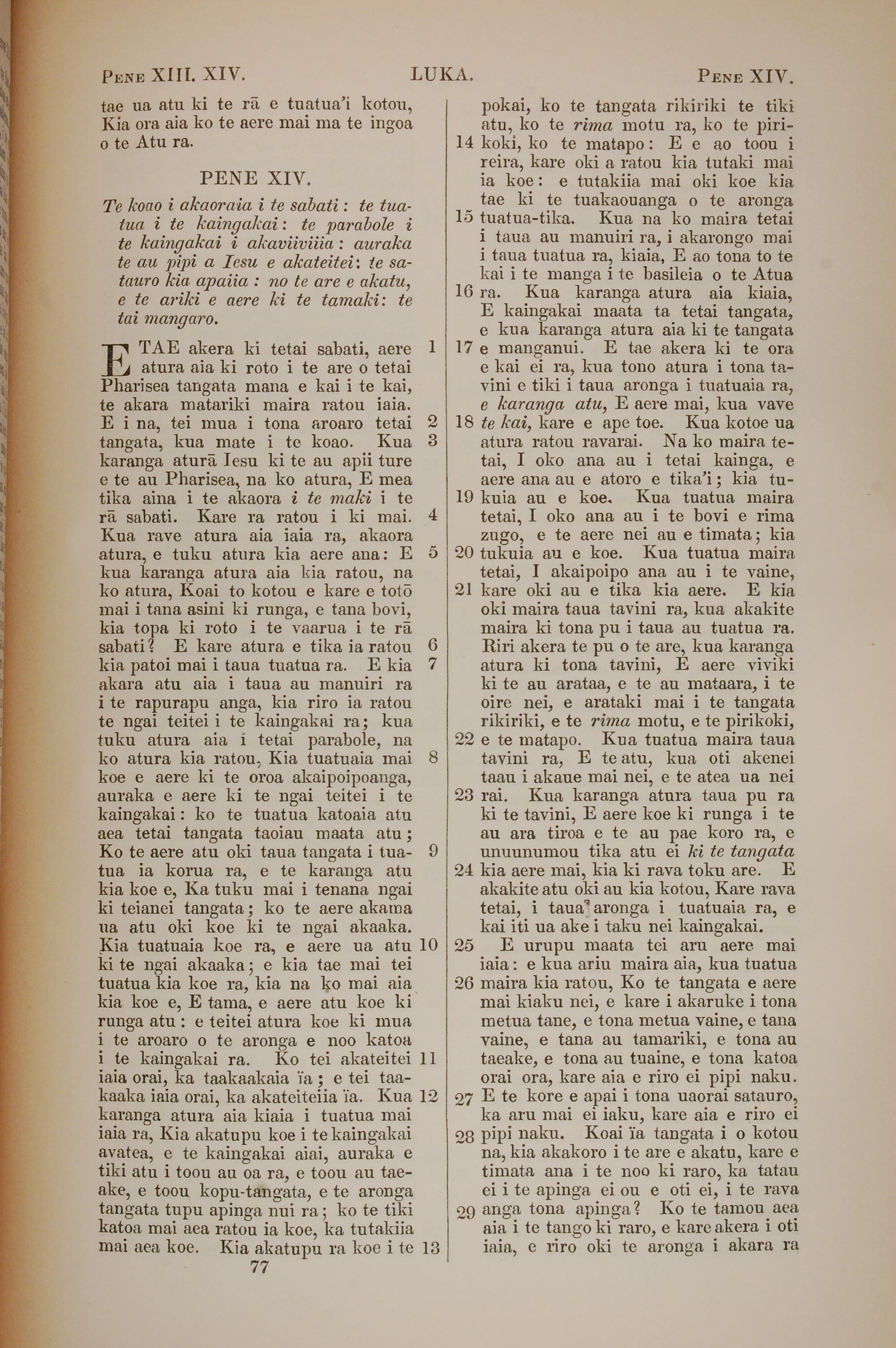 1851年BIBILA TAPU RA 路加福音 14 章 1 节到 14 章 29 节