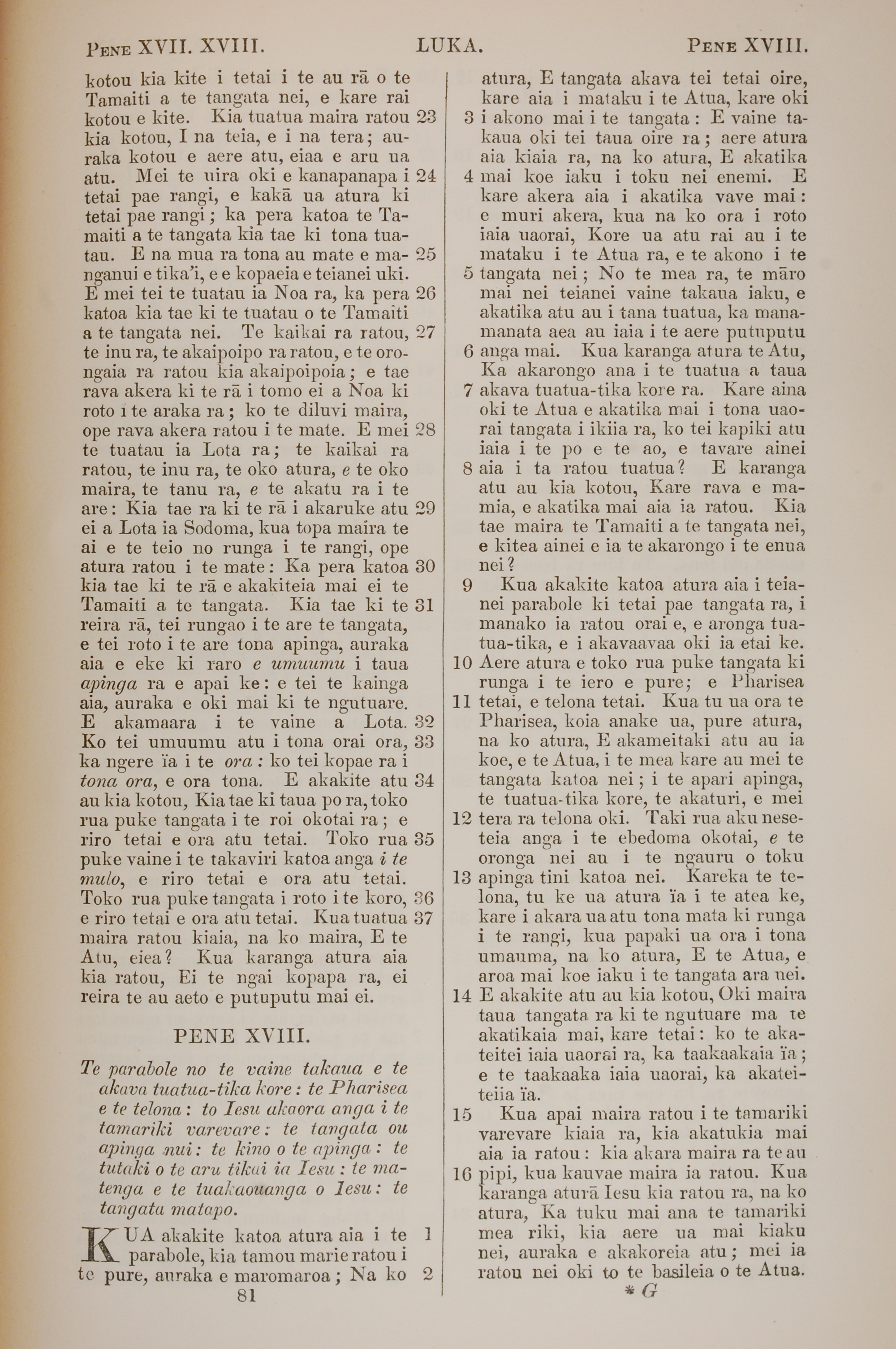 1851年BIBILA TAPU RA 路加福音 17 章 23 节到 18 章 16 节