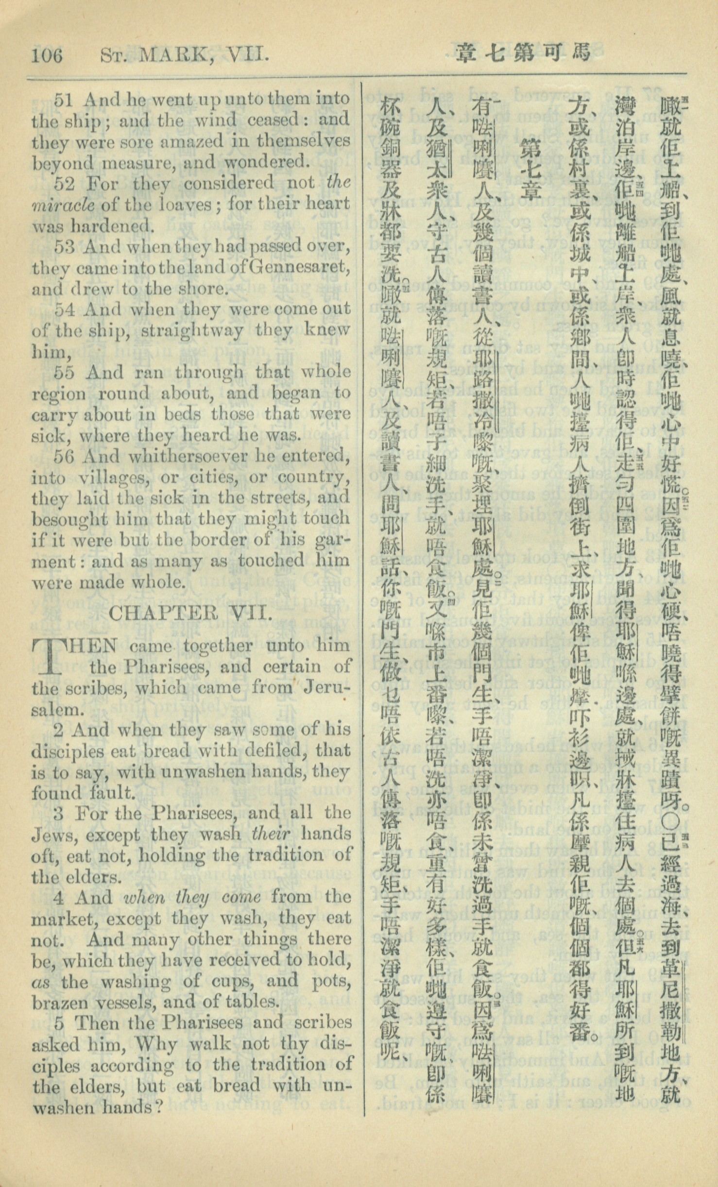 1909年中西字新约全书 马可福音 6 章 51 节到 7 章 5 节