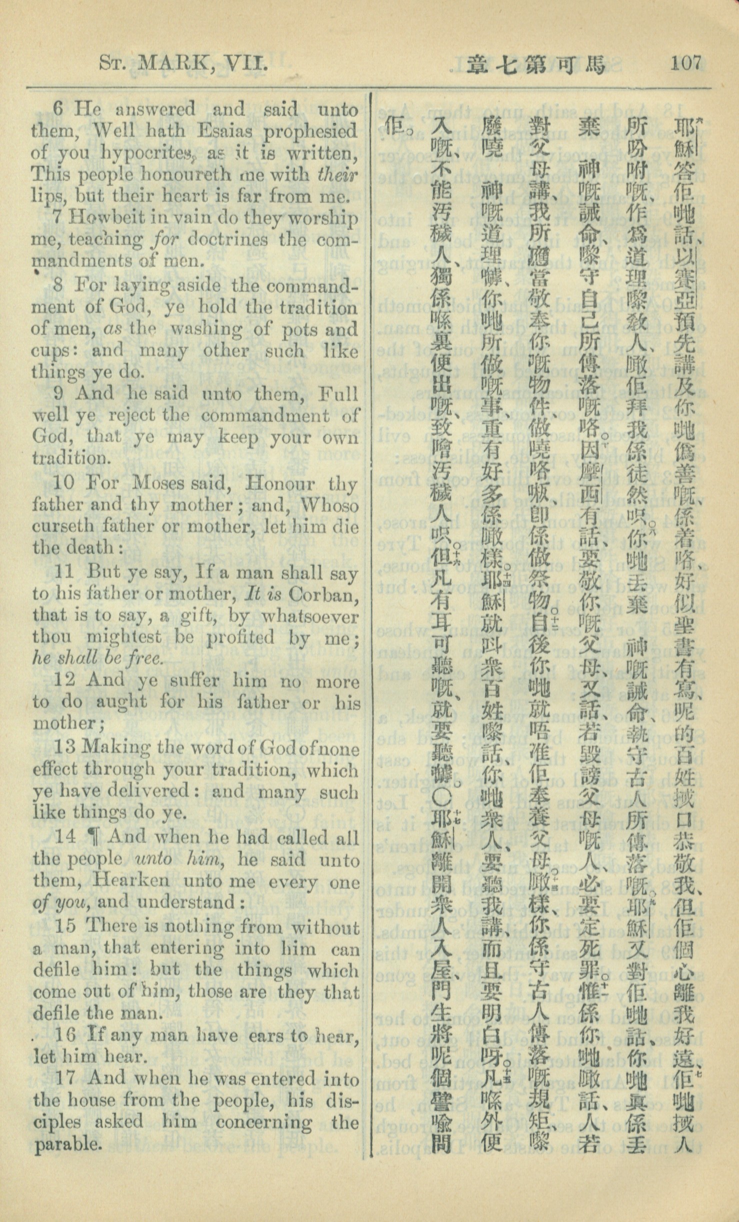 1909年中西字新约全书 马可福音 7 章 6 节到 7 章 17 节