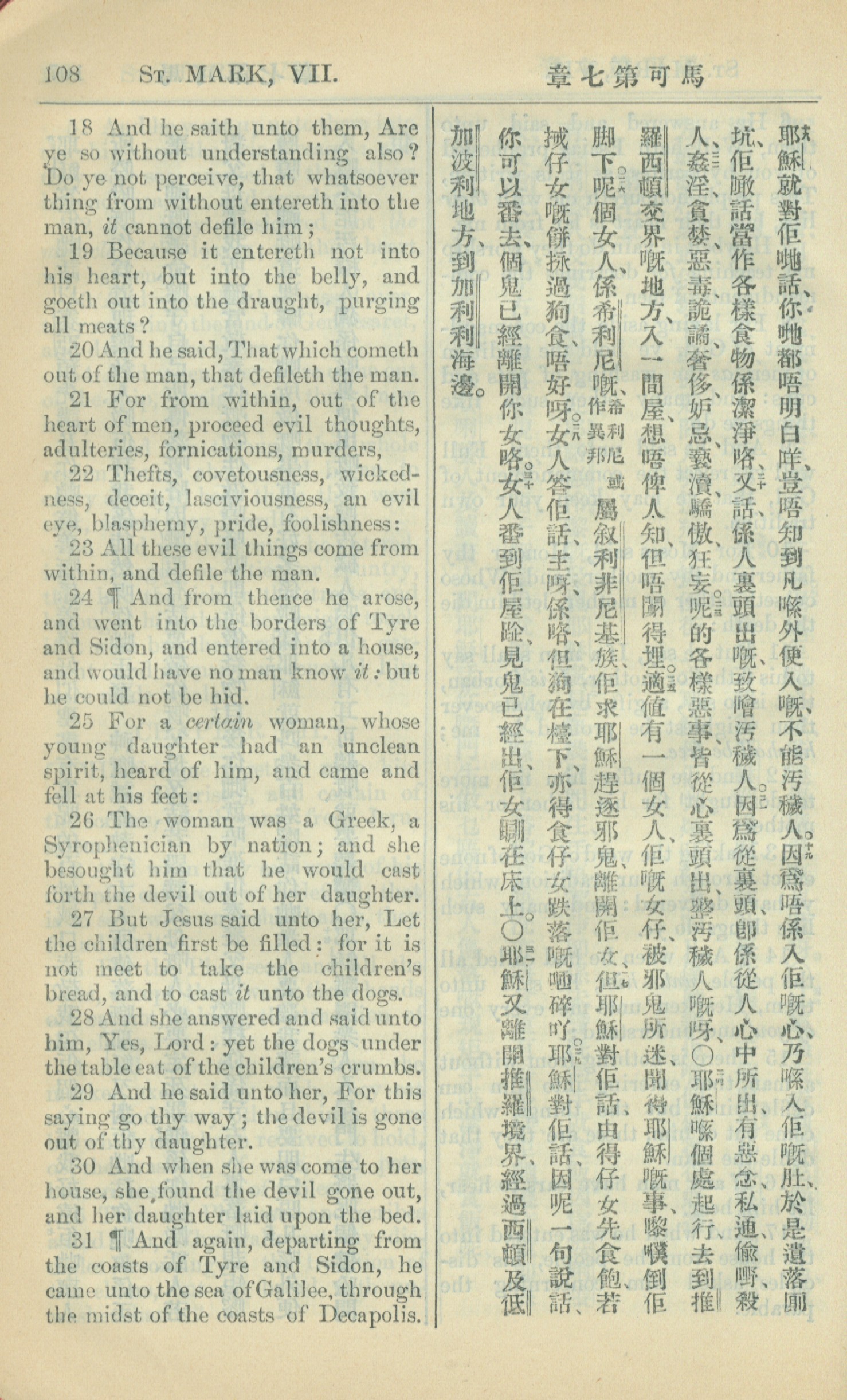 1909年中西字新约全书 马可福音 7 章 18 节到 7 章 31 节