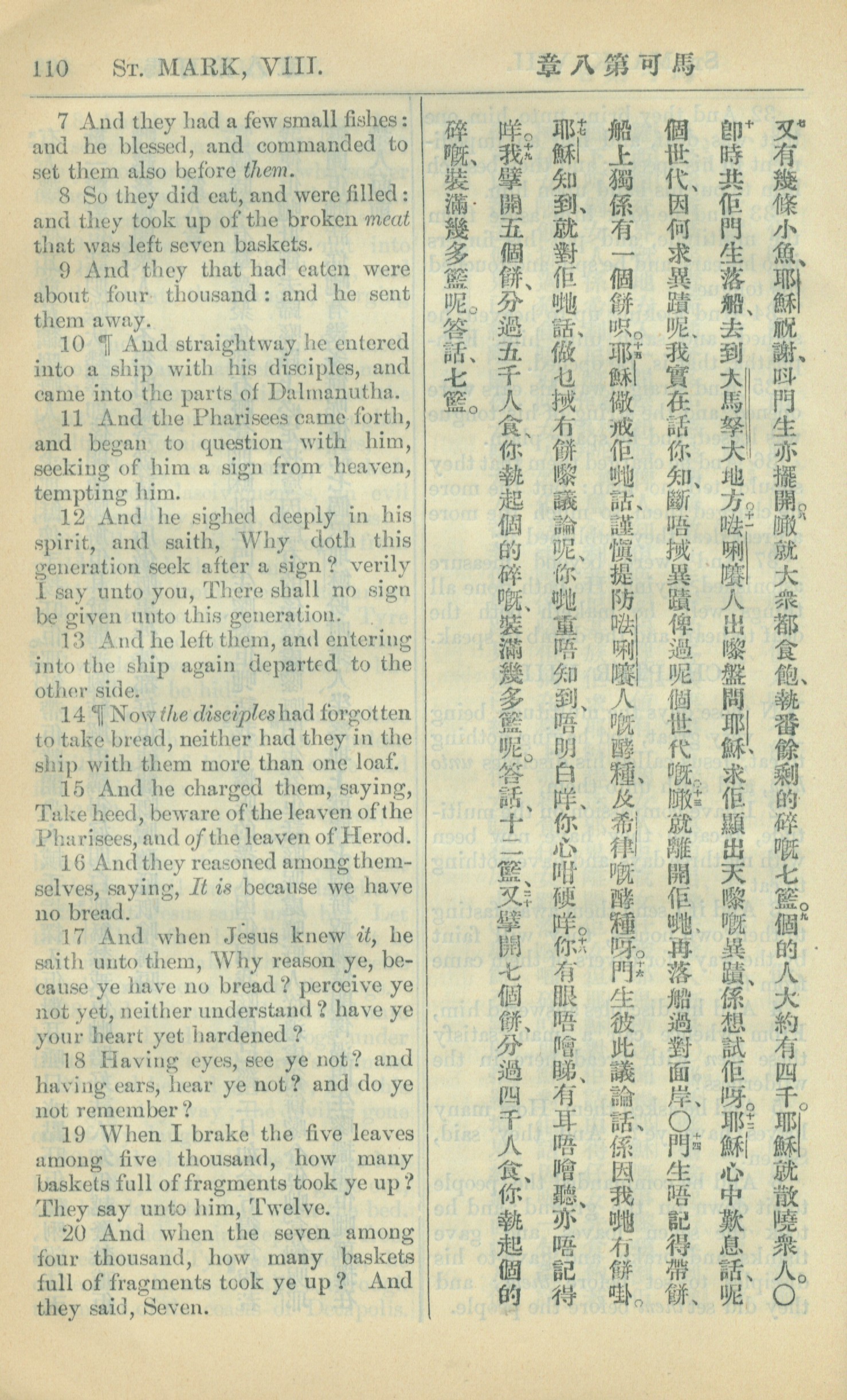 1909年中西字新约全书 马可福音 8 章 7 节到 8 章 20 节