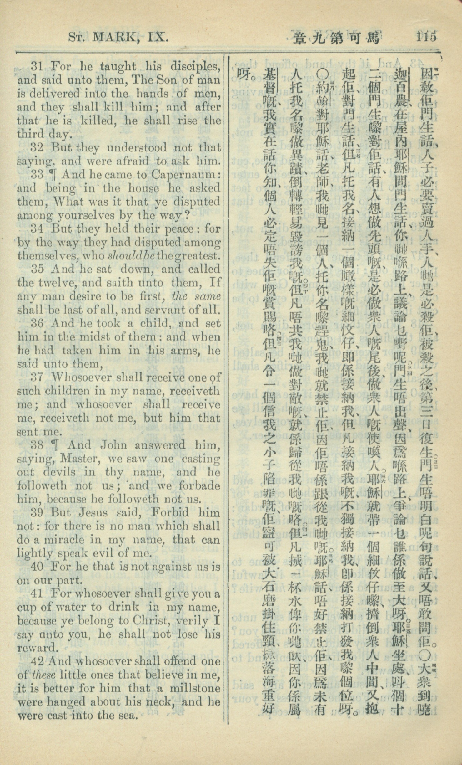 1909年中西字新约全书 马可福音 9 章 31 节到 9 章 42 节