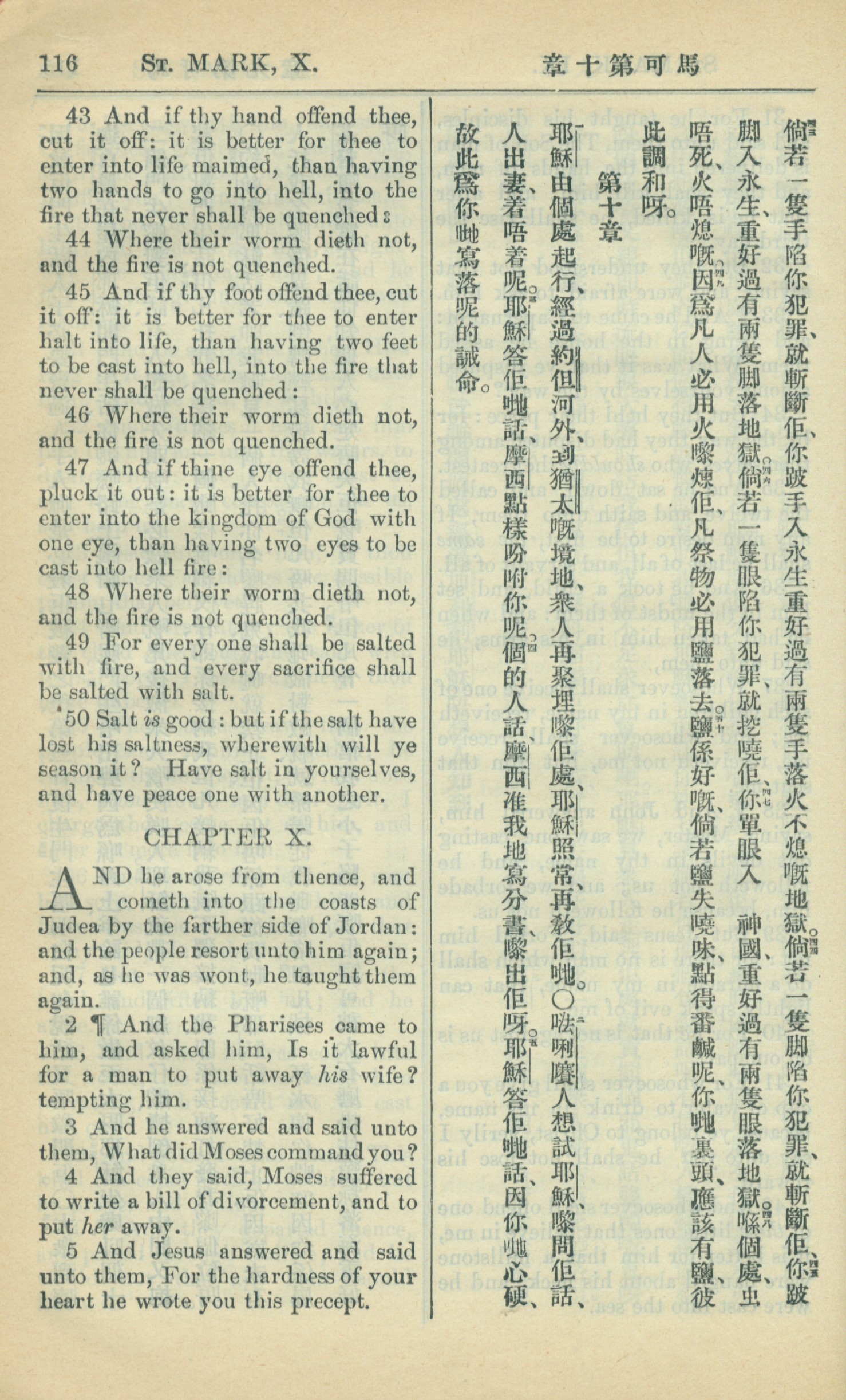 1909年中西字新约全书 马可福音 9 章 43 节到 10 章 5 节