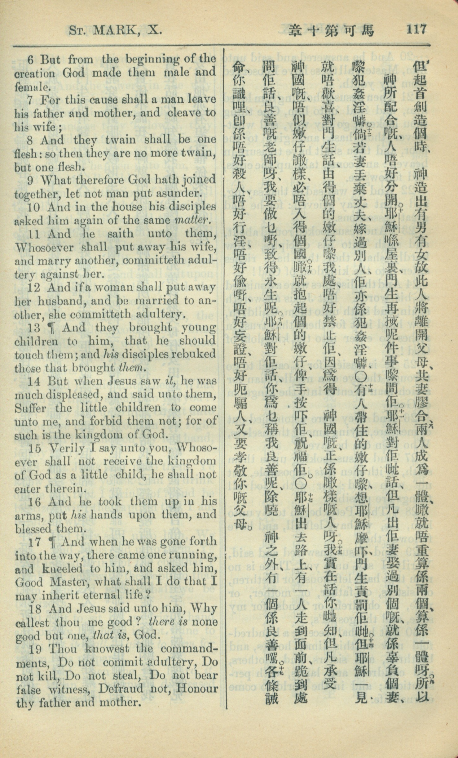 1909年中西字新约全书 马可福音 10 章 6 节到 10 章 19 节