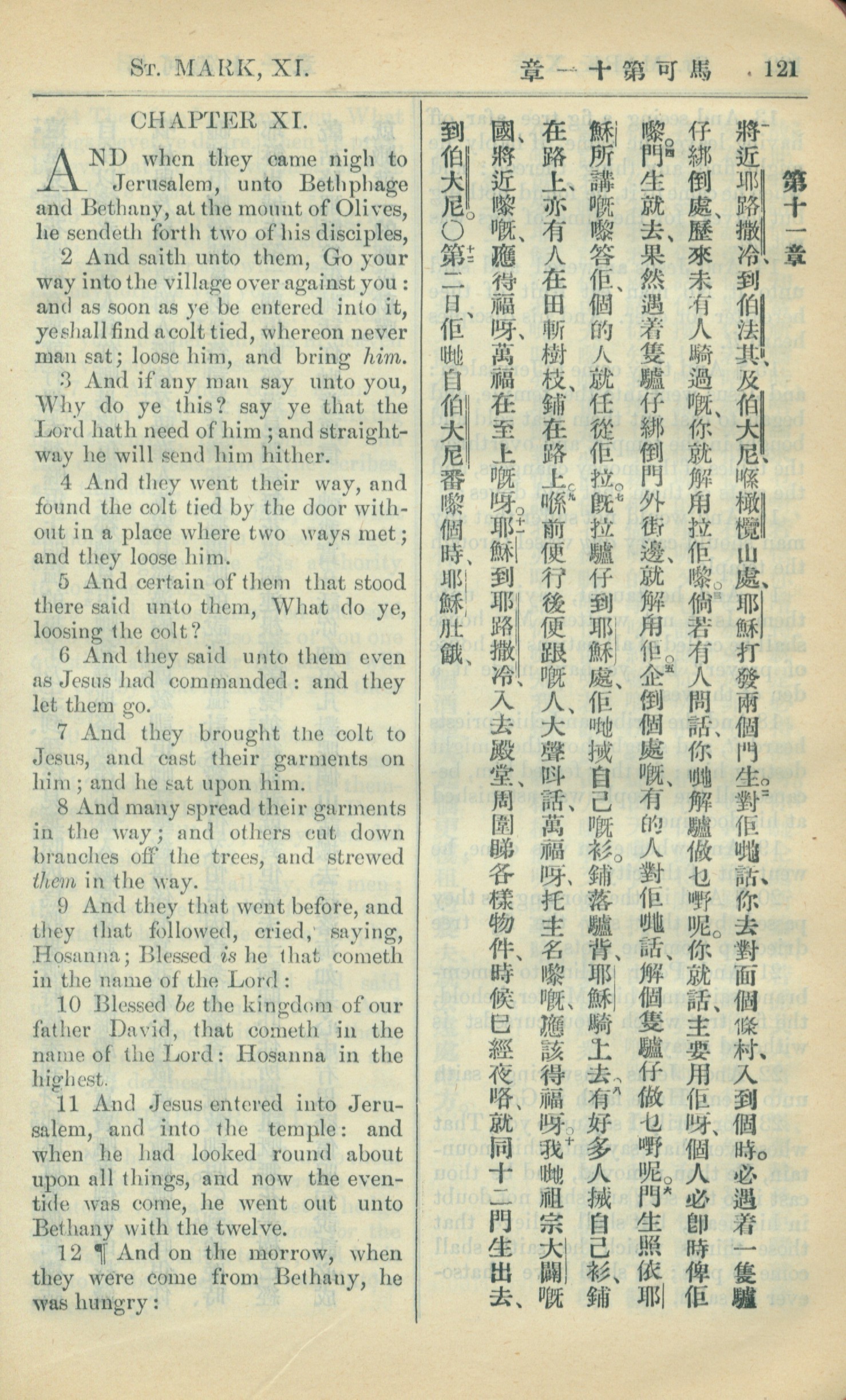 1909年中西字新约全书 马可福音 11 章 1 节到 11 章 12 节