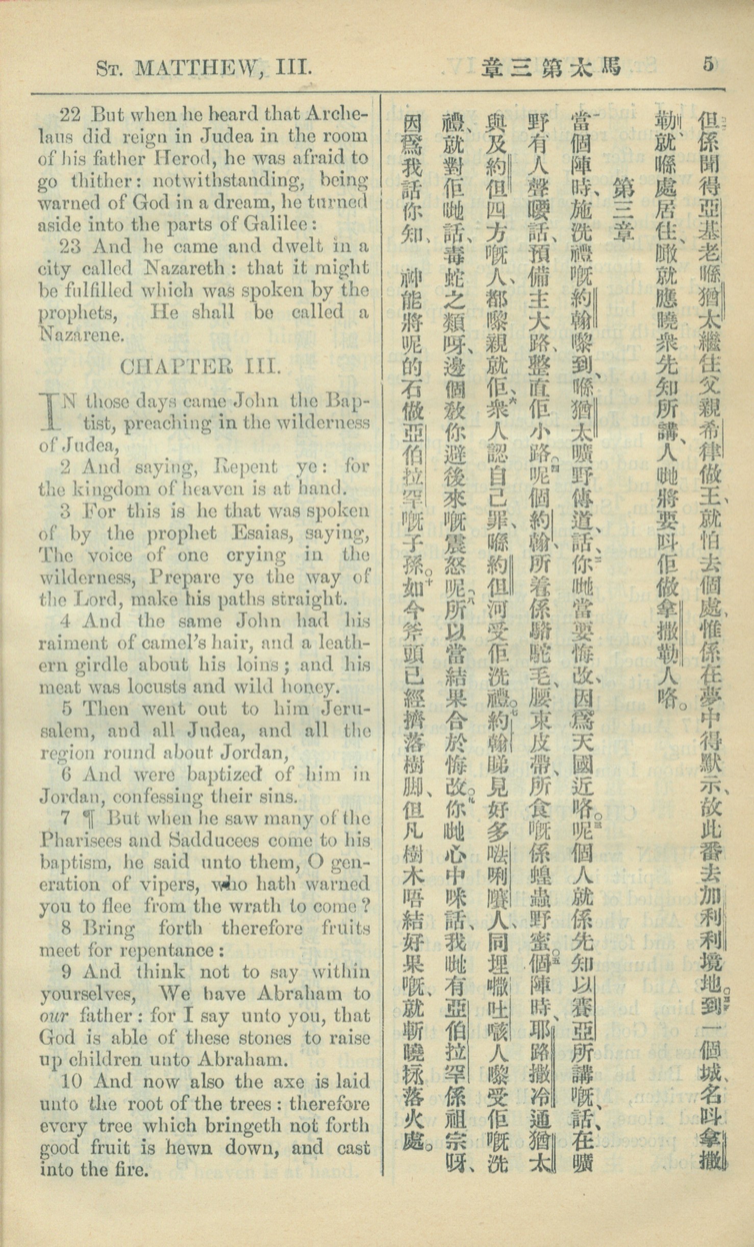 1909年中西字新约全书 马太福音 2 章 22 节到 3 章 10 节