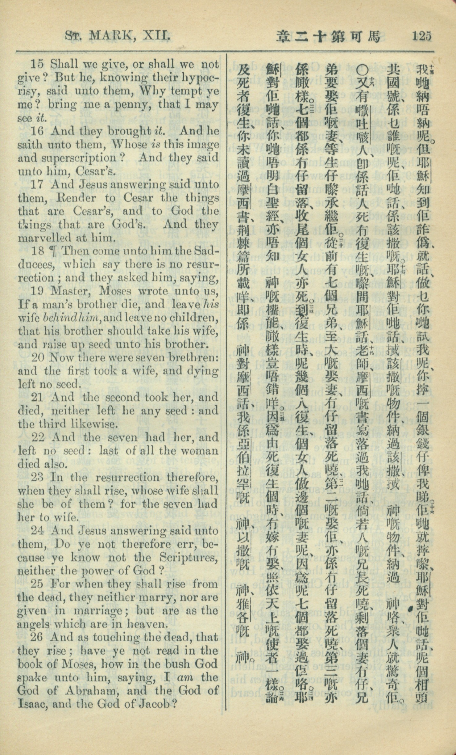 1909年中西字新约全书 马可福音 12 章 15 节到 12 章 26 节
