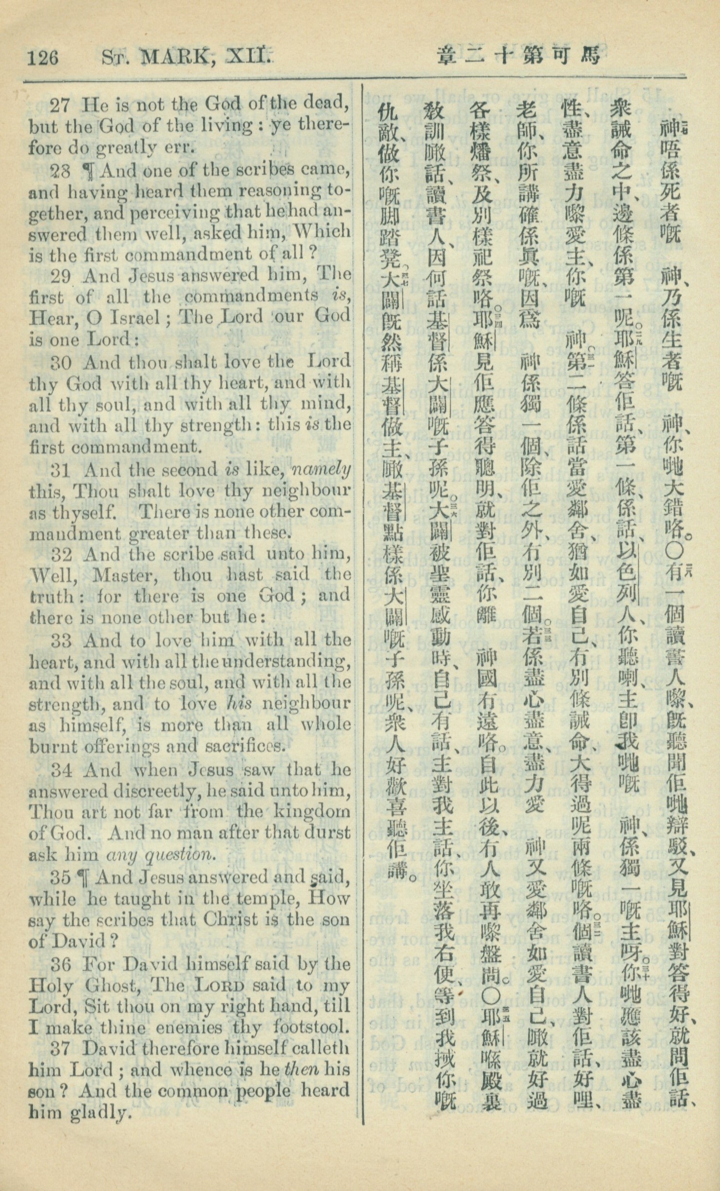 1909年中西字新约全书 马可福音 12 章 27 节到 12 章 37 节