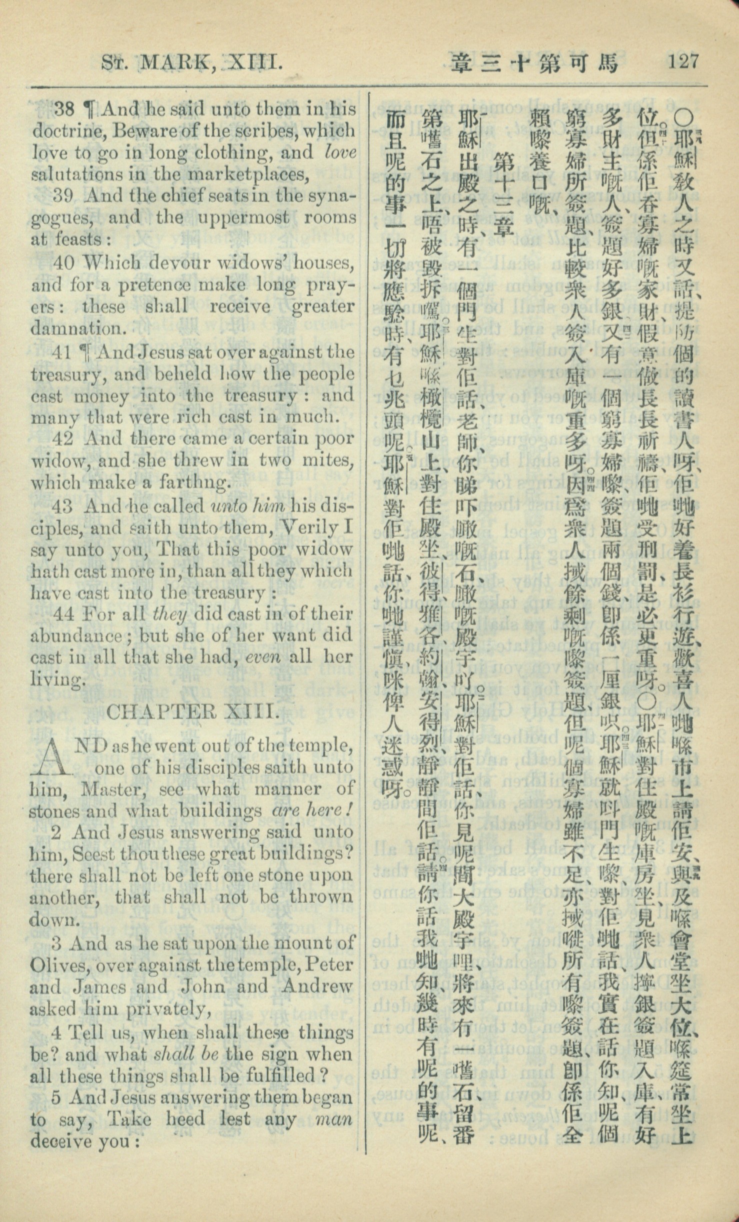 1909年中西字新约全书 马可福音 12 章 38 节到 13 章 5 节